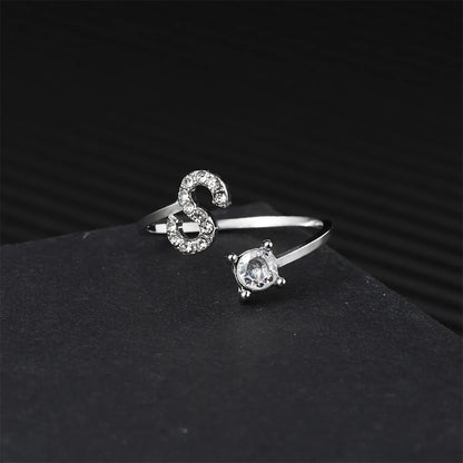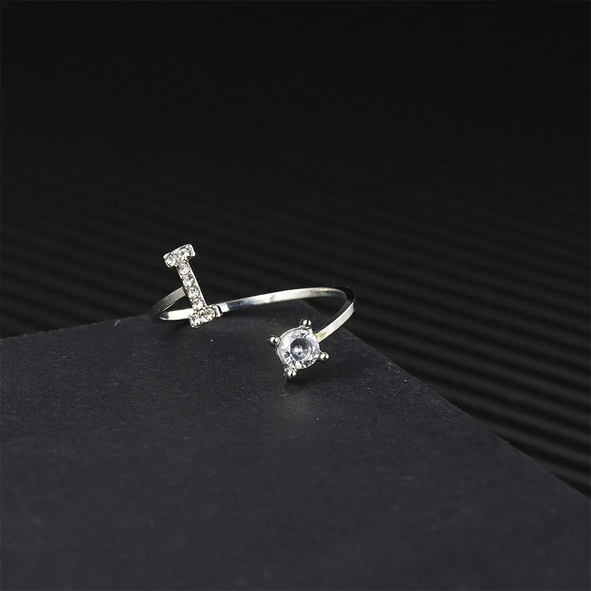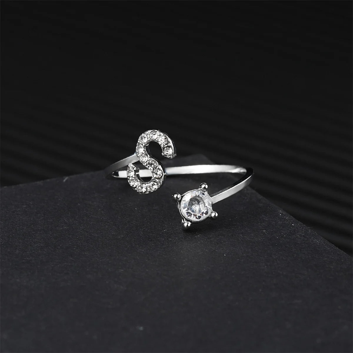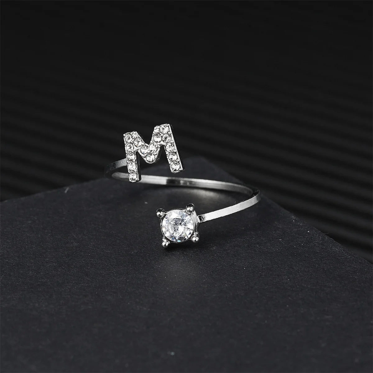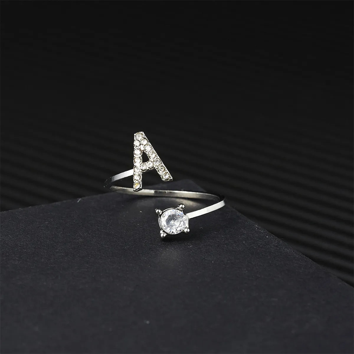 Bagues réglables en Zircon pour femmes, Alphabet AZ