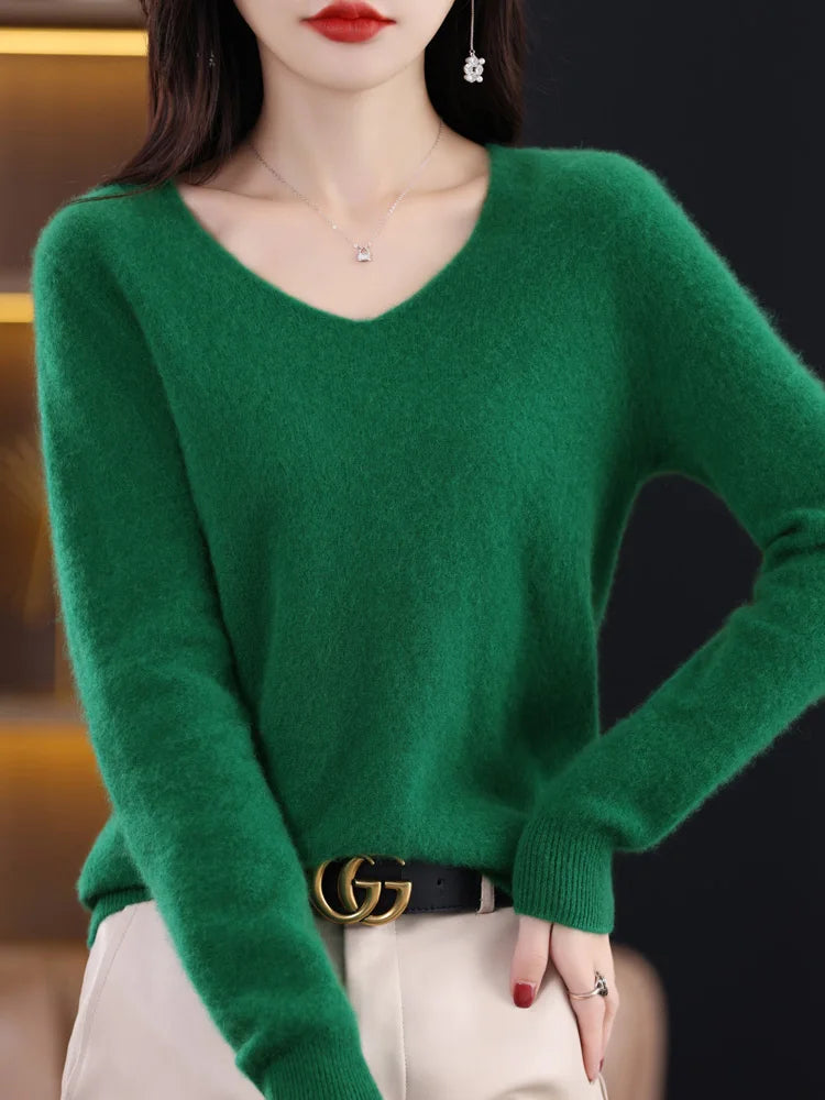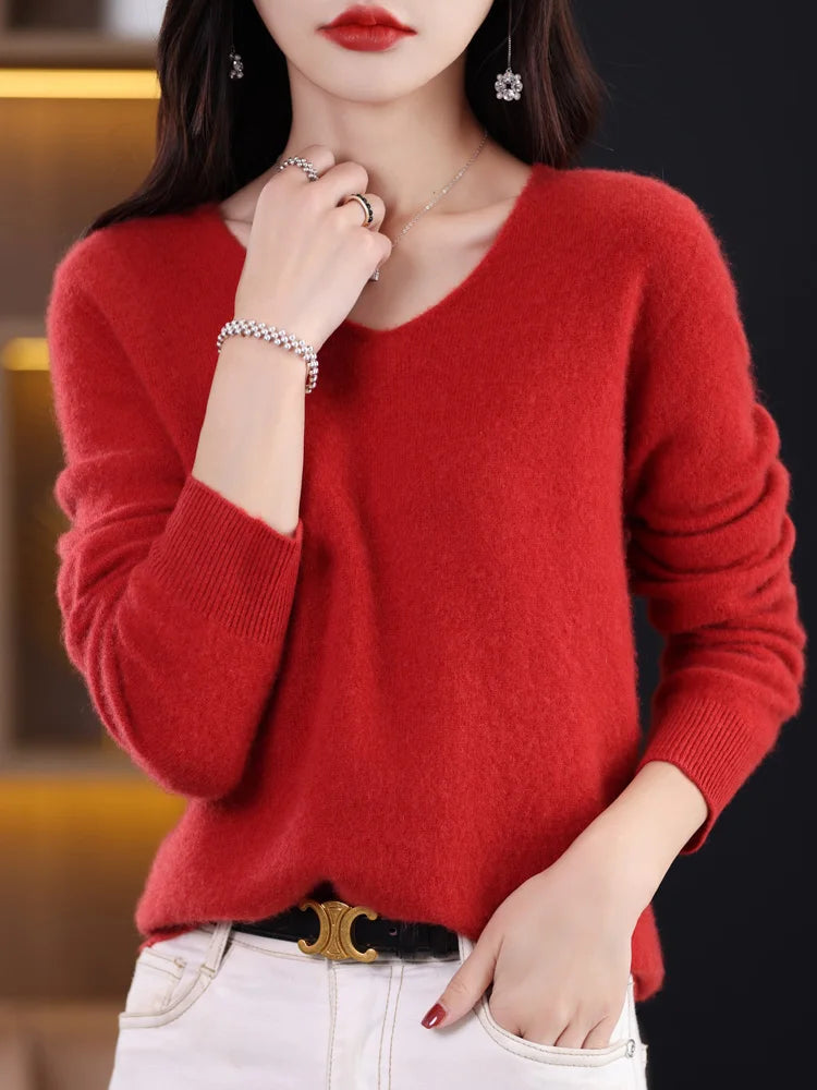 Pull en laine mérinos à col en V pour femme