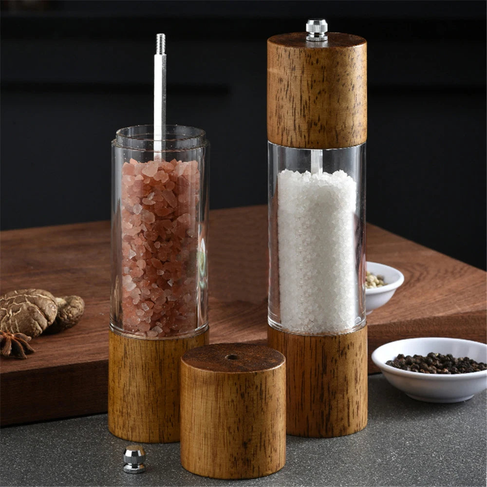 - Moulin à sel et à poivre – Ce moulin à sel et à poivre est fabriqué en acrylique alimentaire de qualité supérieure, en acier inoxydable et avec un rotor en céramique. Ce moulin en acrylique transparent de haute qualité, avec sa finition bois élégante, est un ajout élégant et raffiné à votre cuisine et à votre table.