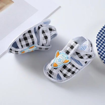 Chaussures d'été pour nouveau-nés garçons de 0 à 12 mois, chaussures de berceau souples avec impression de dessin animé, sandales antidérapantes pour premiers pas des nourrissons, chaussures à semelle souple, nouvelle collection