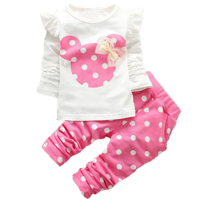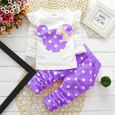 Ensemble bébé fille à manches longues, col rond, nœud et pois