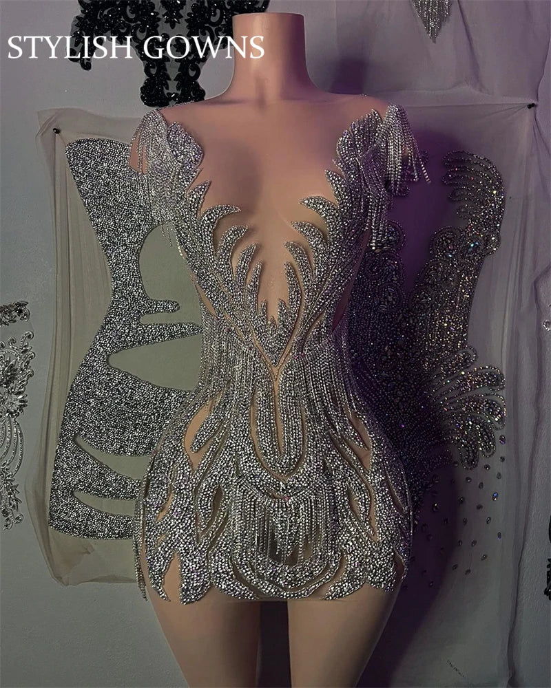 Adoptez l'élégance et l'allure dans cette mini-robe de cocktail noire à diamants pour fille. Fabriqué à la main avec des détails complexes de perles et de chaînes de cristaux, il respire le luxe et la sophistication. Parfait pour les bals de fin d'année ou les soirées haut de gamme, le design transparent ajoute une touche de sensualité. Mettez-vous sous les projecteurs avec confiance et style dans cette robe de soirée sexy et glamour qui promet de faire sensation en 2023.