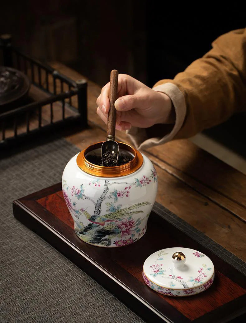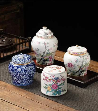 Vases de pot de stockage d’organisateur de thé en céramique bleue et blanche