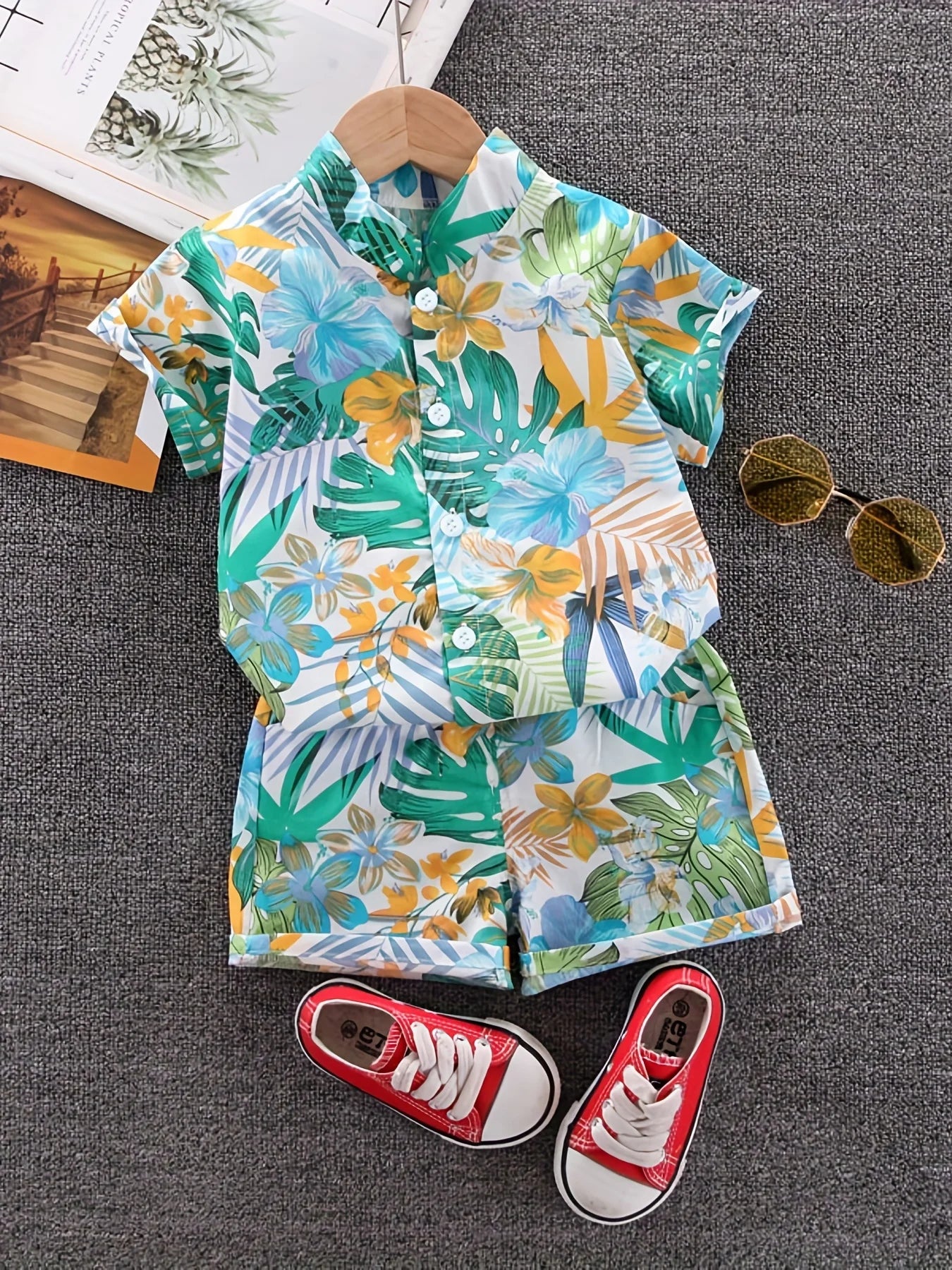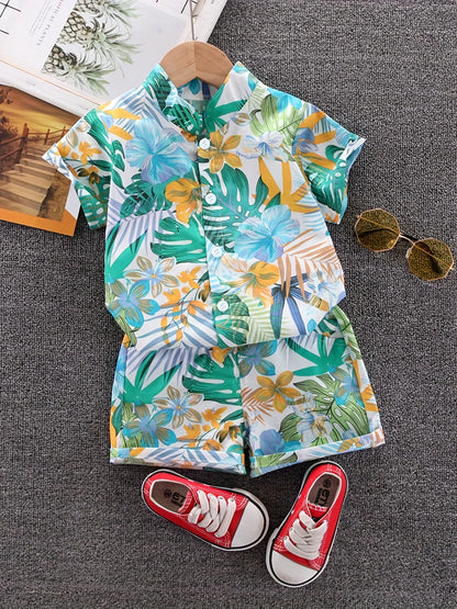 Habillez votre tout-petit avec un style éclatant avec cet ensemble de chemises d'été pour enfants à imprimé feuilles et fleurs colorées ! Doté d'un charmant design de feuilles et de fleurs colorées, cet ensemble ajoute une touche ludique à la garde-robe estivale de votre enfant. Le tissu léger et respirant assure confort et facilité de mouvement pendant les journées chaudes. Parfait pour les jeux, les pique-niques ou les sorties, cet ensemble comprend une chemise à manches courtes et un short assorti, offrant une tenue élégante et confortable pour les aventures estivales de votre enfant.