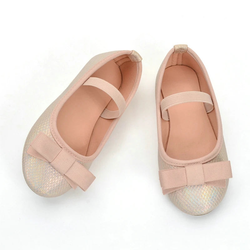 Chaussures de princesse à semelles souples et élastiques avec nœud mignon et coupe peu profonde