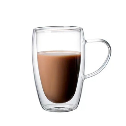 Tasse en verre à double paroi inférieure avec poignée résistante à la chaleur