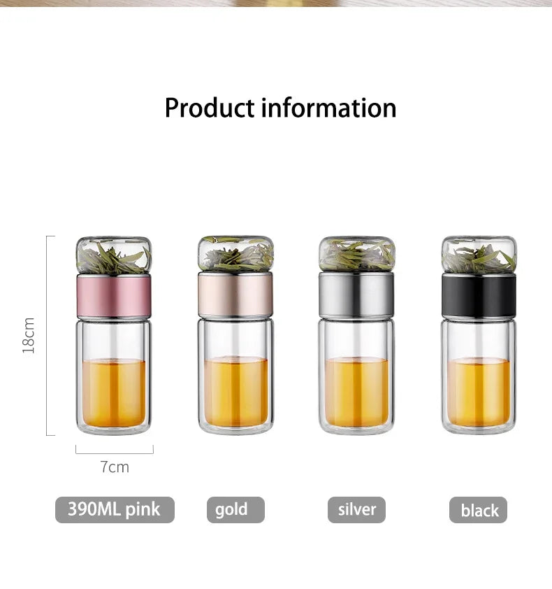 Ensemble de bouteilles d'eau à thé en verre à double couche