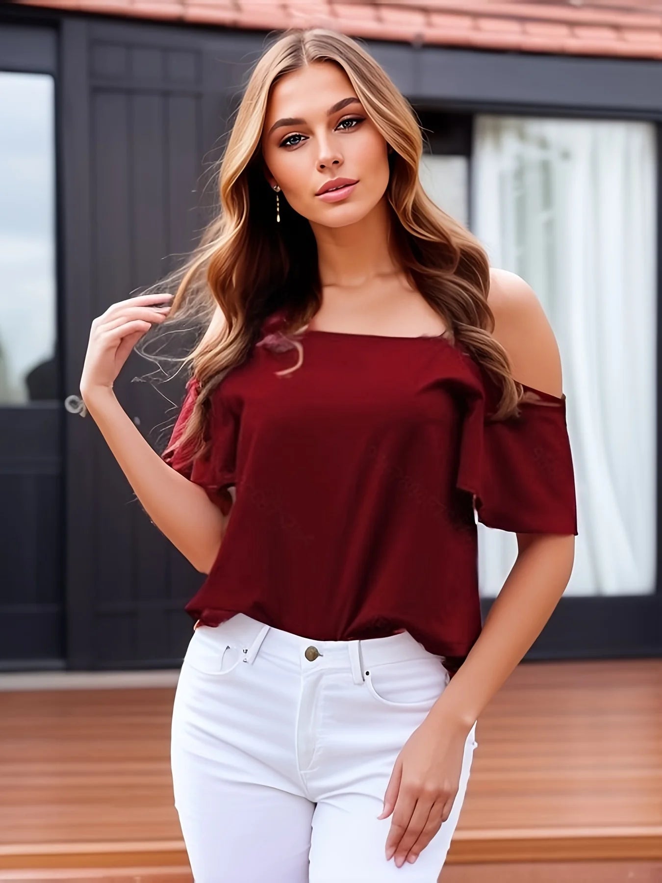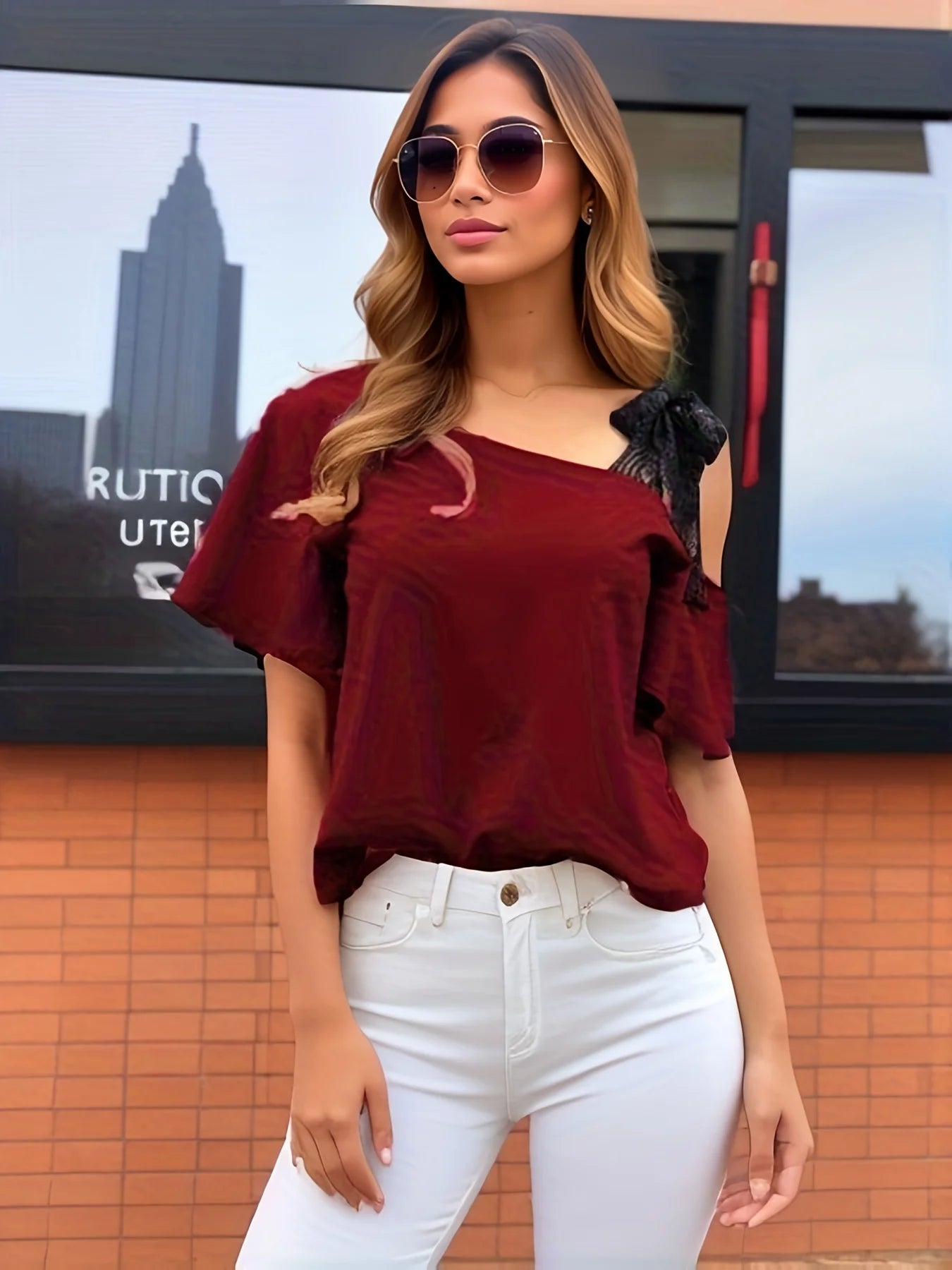 Rehaussez votre garde-robe décontractée avec ce t-shirt asymétrique tendance. Doté d'une coupe oblique chic et d'un tissu en polyester doux, ce haut est parfait au quotidien, pour les soirées ou les sorties décontractées. Son style polyvalent permet de l'associer facilement à un jean, une jupe ou un short pour un look tendance. 💃