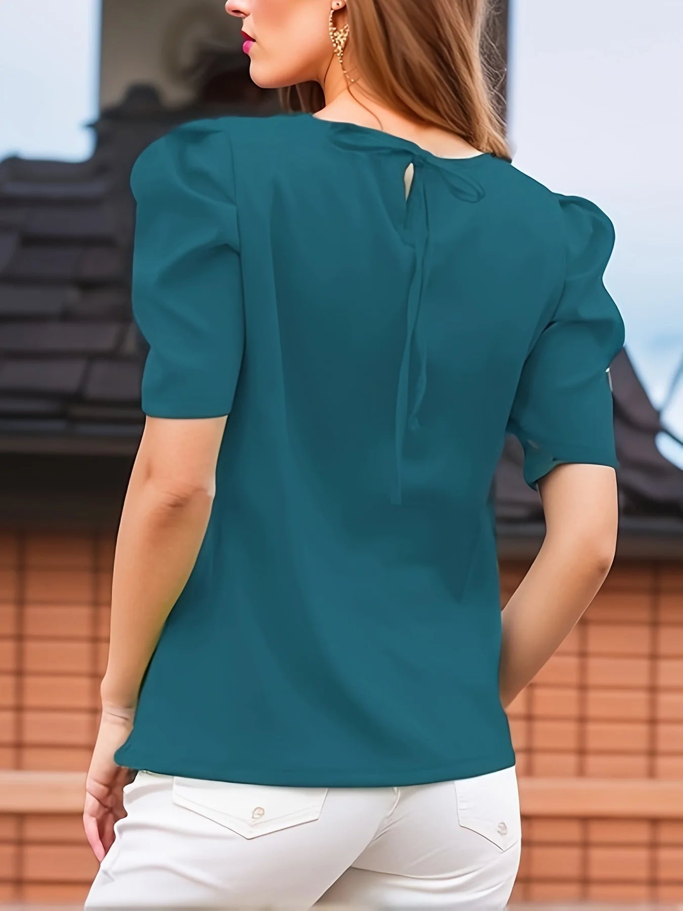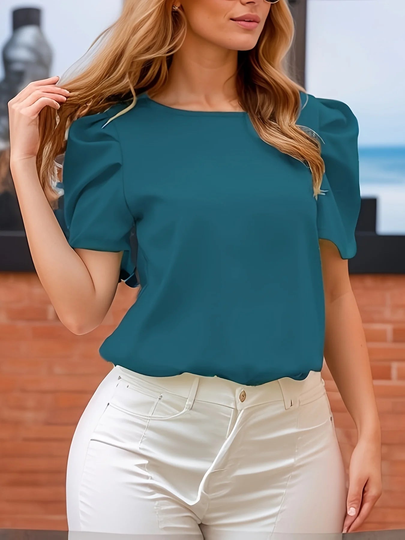 Sublimez votre garde-robe estivale avec nos chemisiers tendance à manches bouffantes . Doté d'un décolleté en V flatteur et de manches courtes bouffantes douces, ce chemisier allie confort et élégance moderne, idéal pour une sortie décontractée, une journée au bureau ou une occasion spéciale.