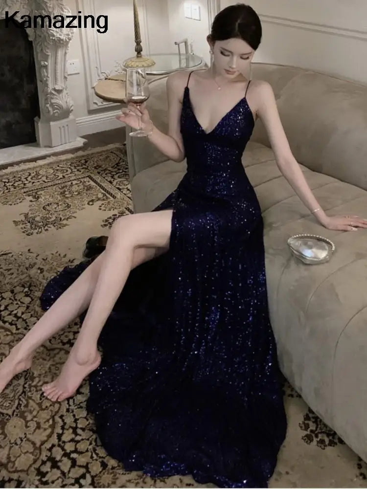 Brillez en toute occasion formelle avec cette élégante robe à paillettes et col en V. Conçue pour les remises de diplômes et les événements de luxe, elle présente un dos nu sexy, une jupe fendue et une coupe bandage qui épouse vos courbes. Parfaite pour l'été, cette robe digne des défilés allie glamour et sophistication pour vous démarquer.