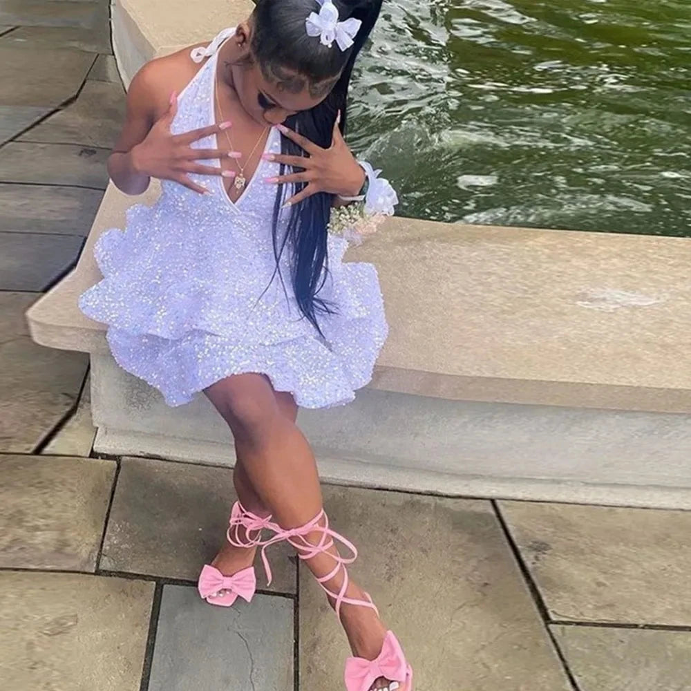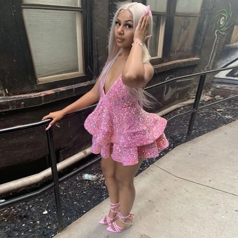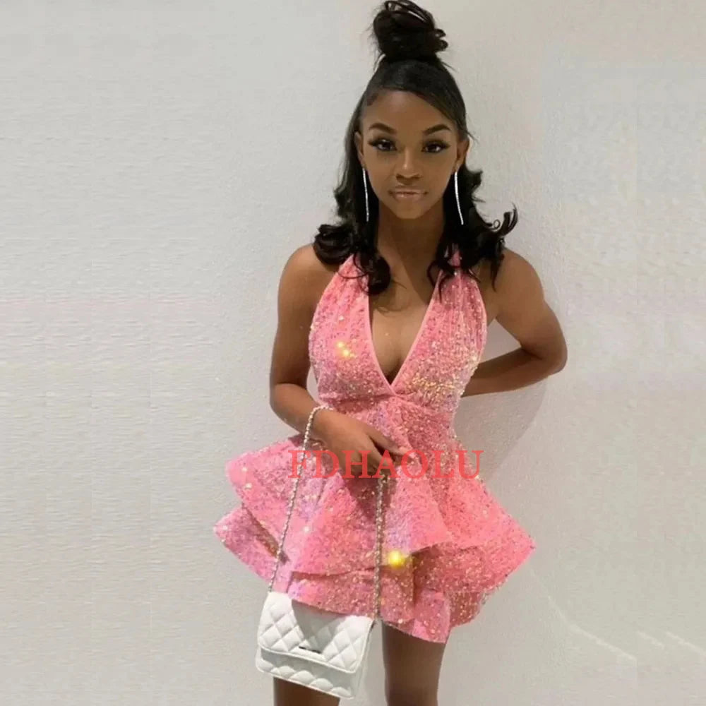 Faites une déclaration audacieuse avec cette robe de bal noire sexy à sequins et à plusieurs niveaux. Doté d'un design dos nu et d'une longueur mini, il respire l'allure et la sophistication. Parfaite pour les fêtes d'anniversaire ou toute autre occasion spéciale, cette robe est disponible en grandes tailles, assurant un ajustement parfait à chaque morphologie. Entrez dans l’élégance et la confiance avec cette superbe robe noire.