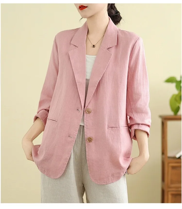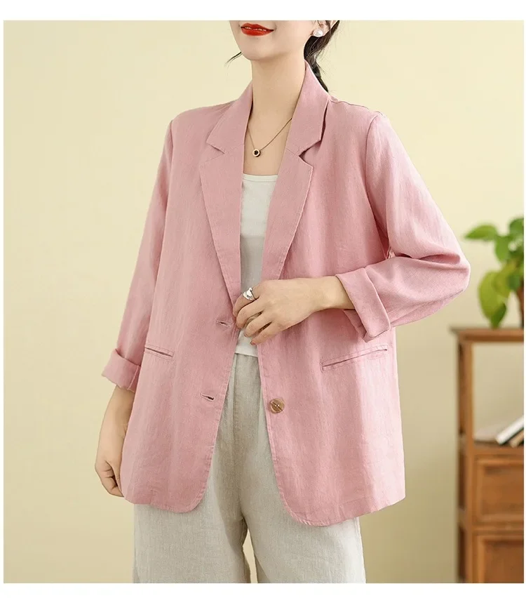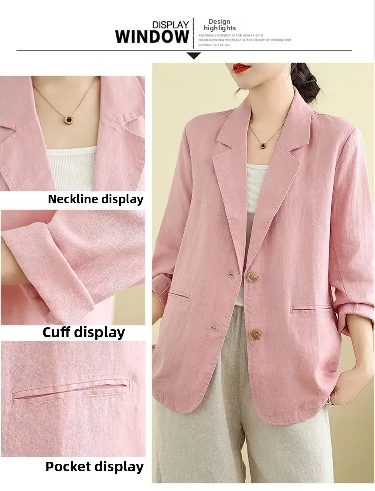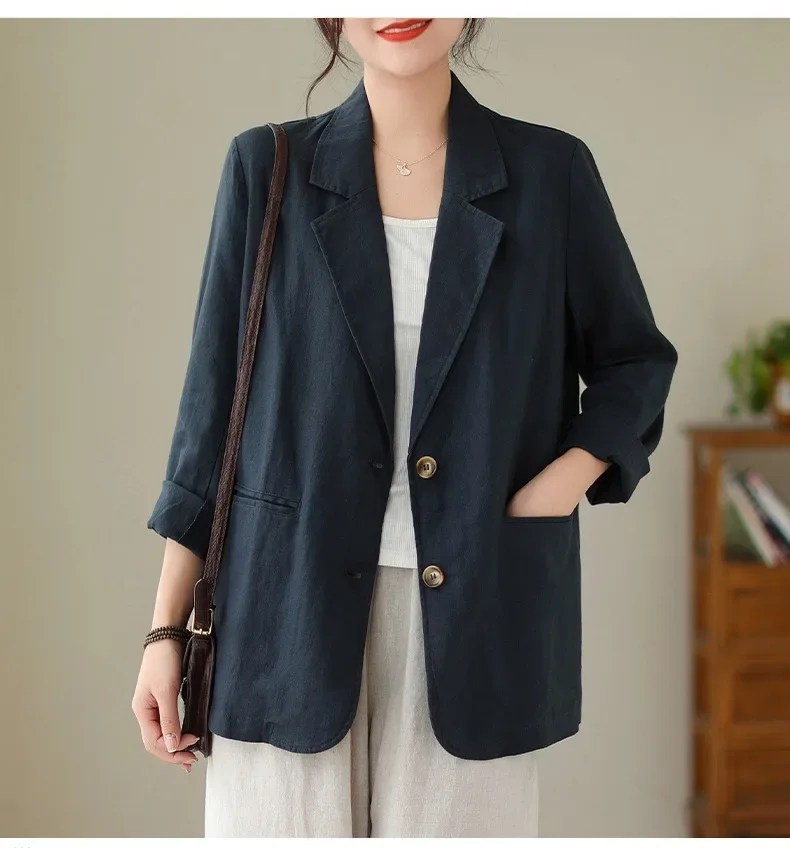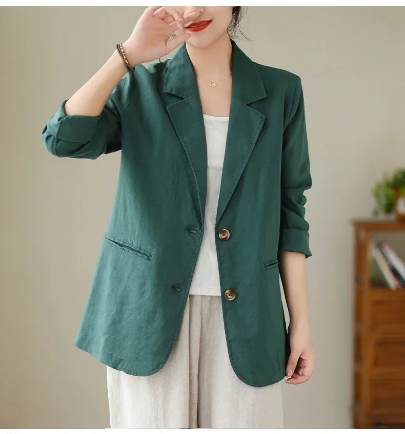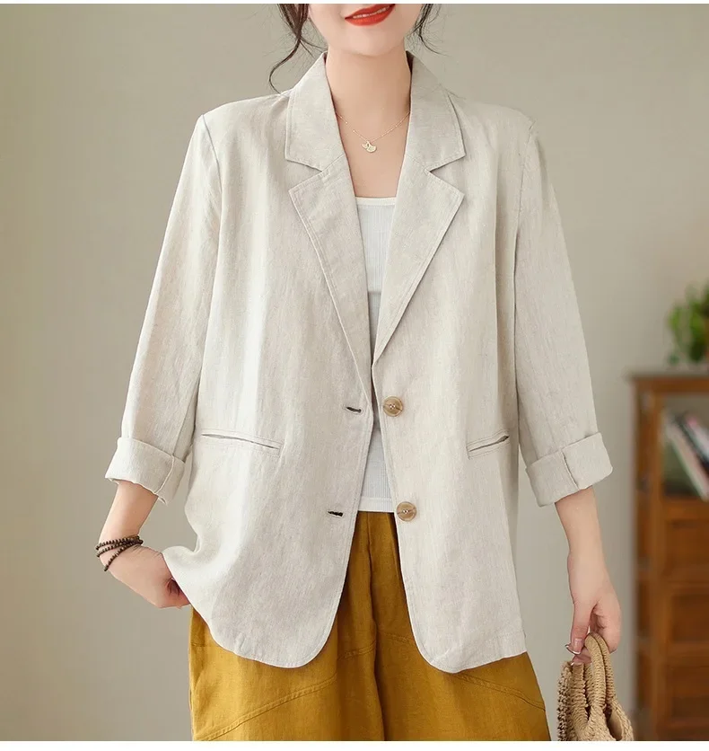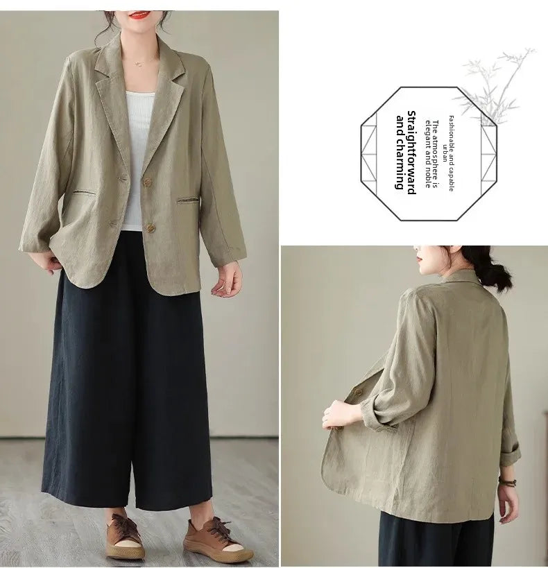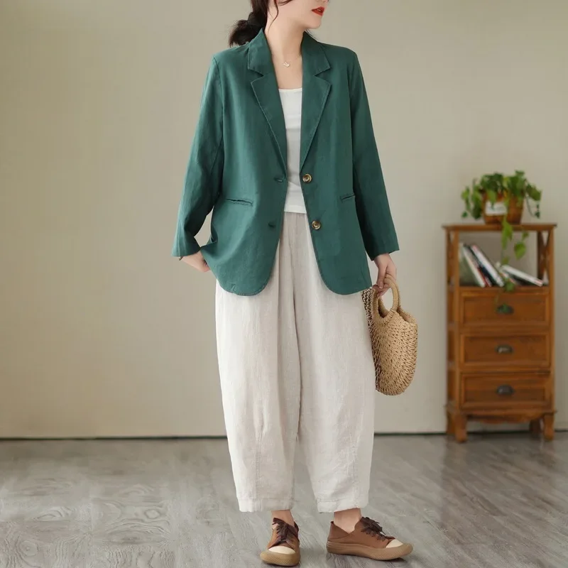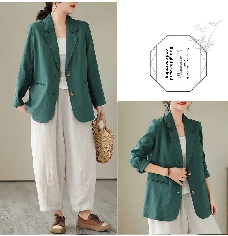 Matière coton-lin : Fabriqué à partir d'un mélange de coton et de lin, ce manteau offre une tenue confortable et respirante, parfaite pour le début du printemps.