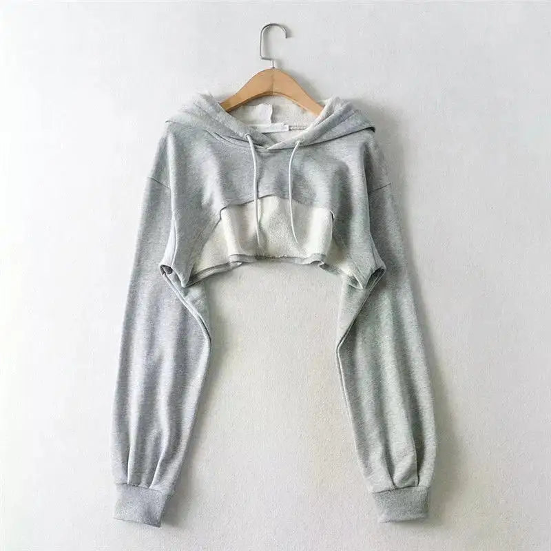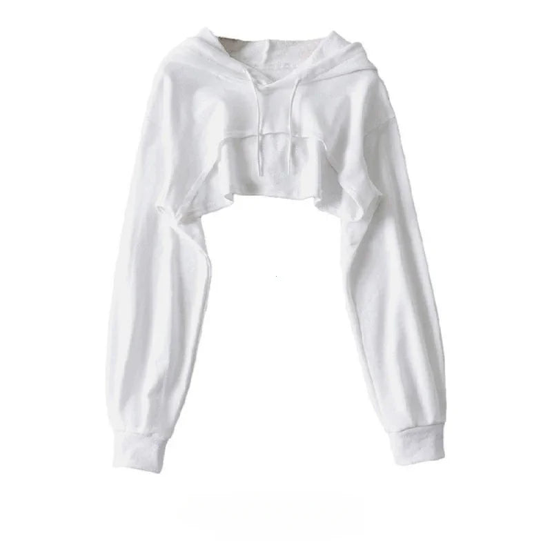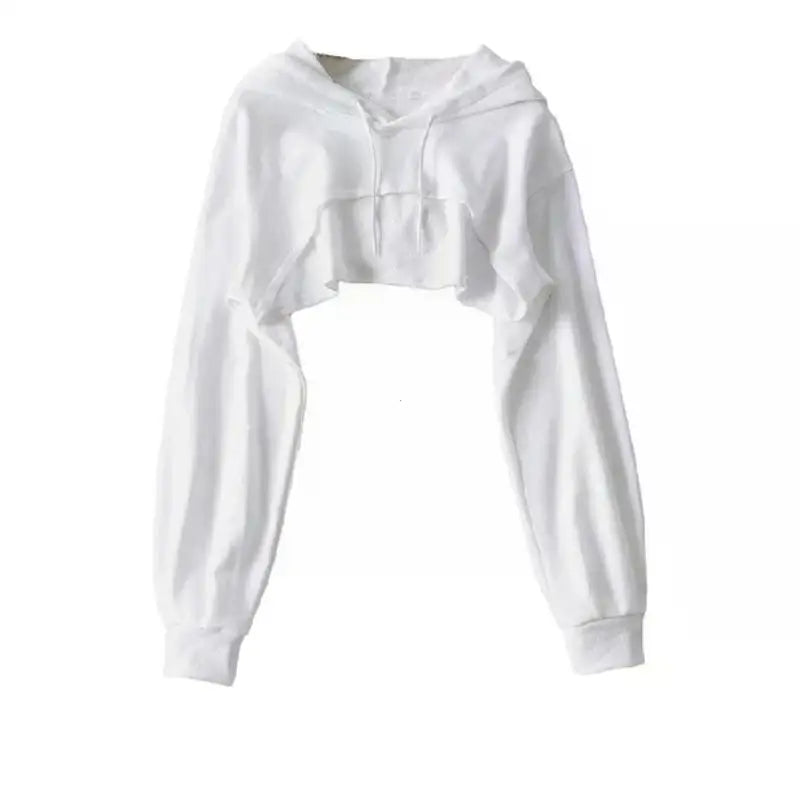 Sweat à capuche pour femme, style irrégulier, coupe ultra courte, manches longues, livraison directe