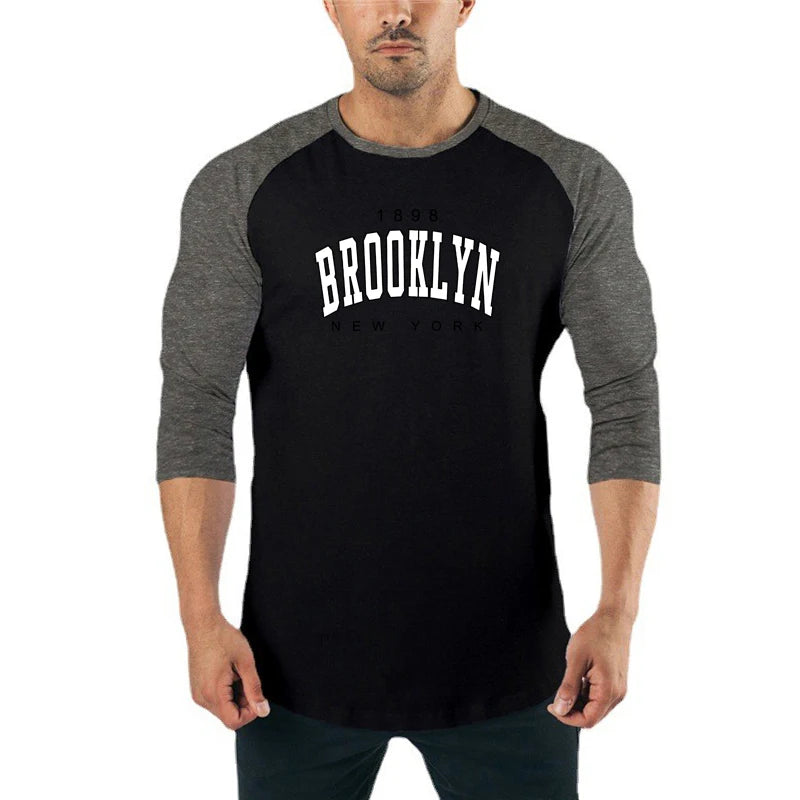 T-shirt slim à manches trois-quarts en coton imprimé pour homme