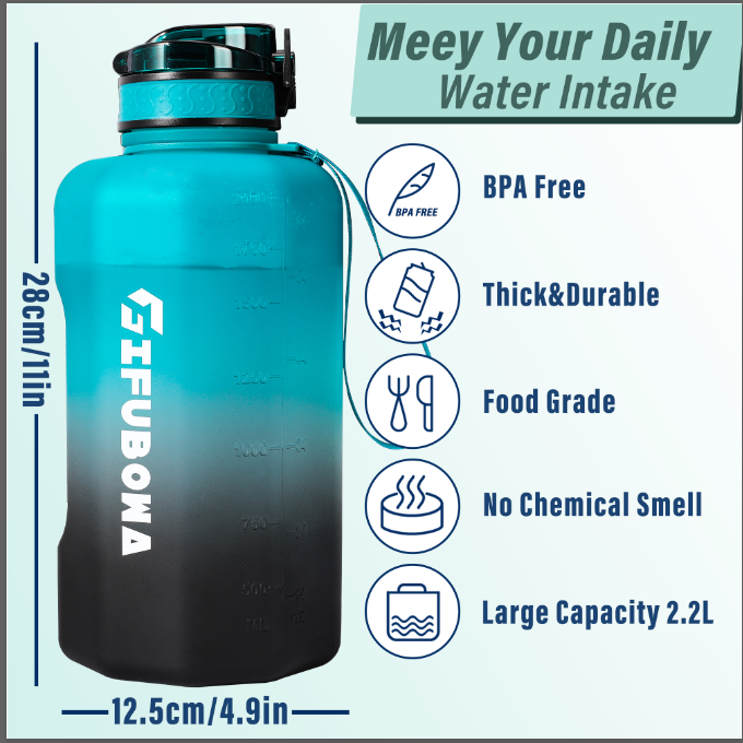 Restez inspiré pendant vos séances de sport grâce à notre gourde de 2,2 litres, ornée de citations motivantes et d'une poignée pratique. Fabriquée en matériau sans BPA, cette gourde grande capacité vous permet de rester hydraté tout au long de votre entraînement. Avec son design pratique et ses messages motivants, elle est le compagnon idéal pour atteindre vos objectifs d'hydratation pendant vos entraînements.