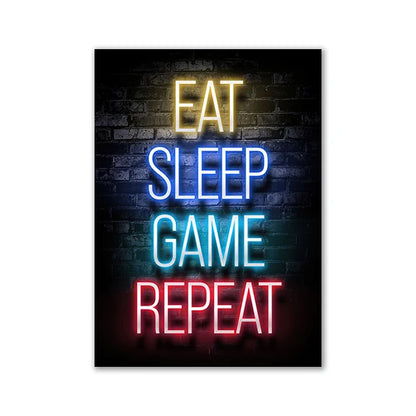 * Ajoutez une touche dynamique à votre salle de jeu avec notre affiche murale avec slogan de jeu de motivation à effet de lumière néon.