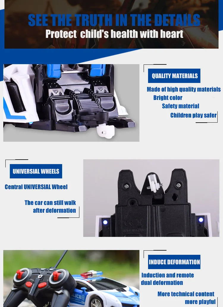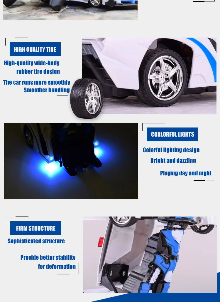 - 🚘 Conception transformable 2 en 1 : Passez facilement du mode robot au mode voiture.