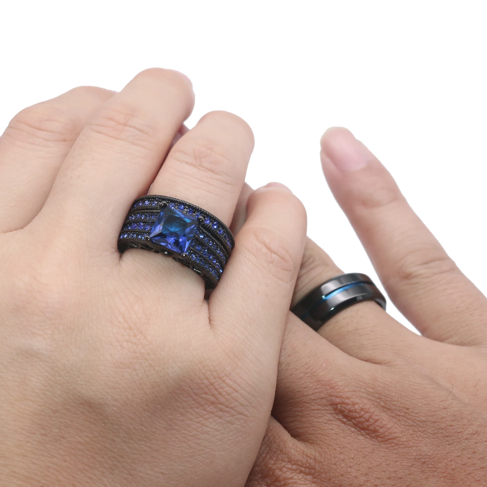Bagues tendance pour femmes, couleur or noir, élégantes, avec strass en zircon cubique bleu, pour alliance, bijoux d'anniversaire