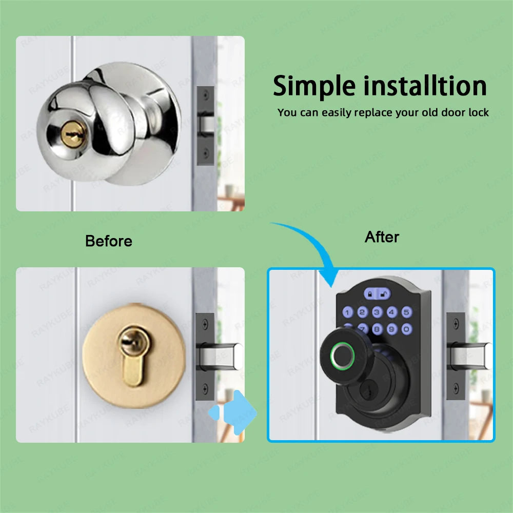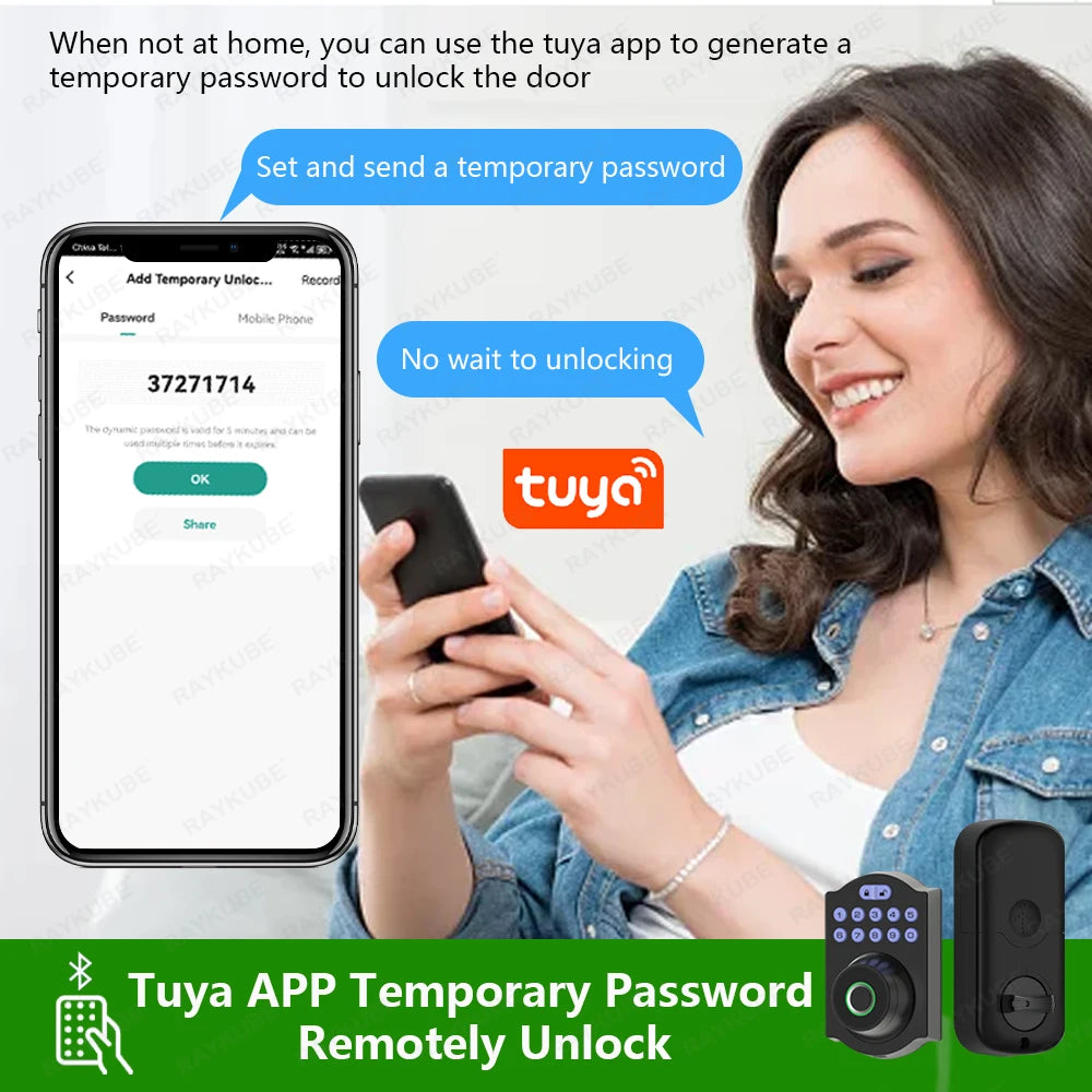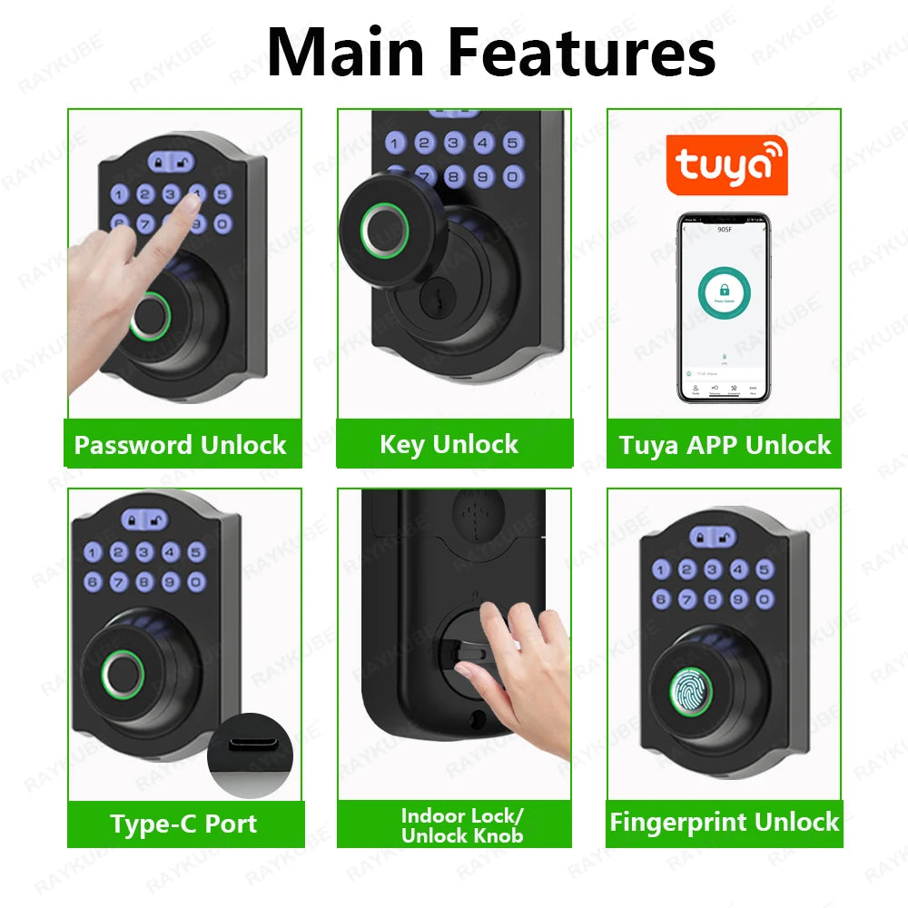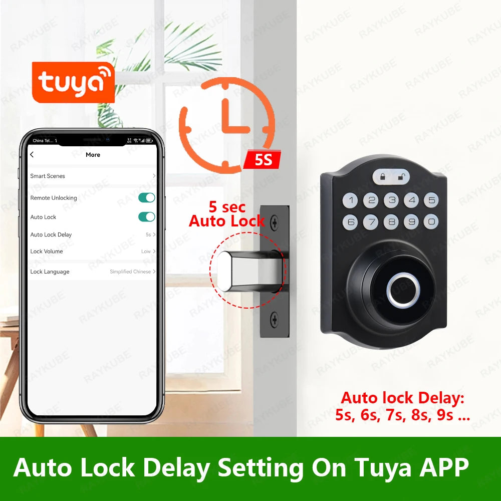 Améliorez la sécurité de votre maison avec le verrou à pêne dormant à empreinte digitale RAYKUBE Tuya BLE. Profitez de fonctionnalités telles que l'accès par empreinte digitale, le déverrouillage à distance de l'application et le délai de verrouillage automatique personnalisable. Sécurisée et pratique, cette serrure intelligente prend également en charge les mots de passe et la saisie par clé pour une protection polyvalente.