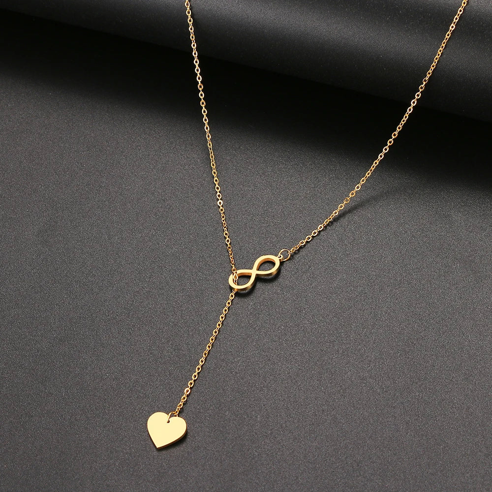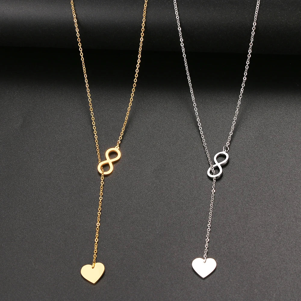 Collier tendance en acier inoxydable 316L avec pendentif en forme de cœur et de « 8 » pour femme, bijou de fête, cadeau idéal pour une amie