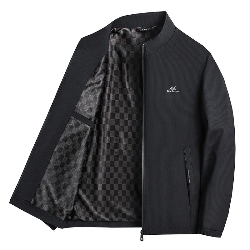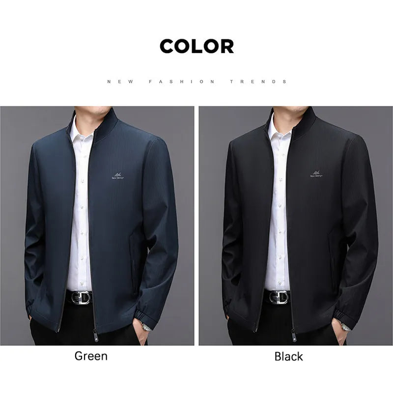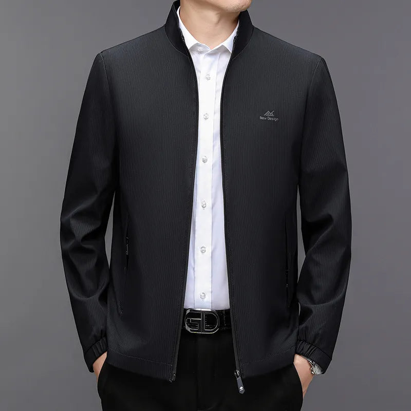Cette veste à col montant allie style formel élégant et style décontracté, idéale pour les hommes d'âge moyen en quête de sophistication.