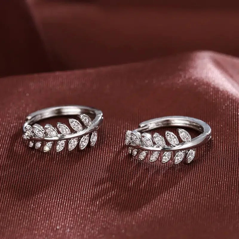 Boucles d'oreilles créoles élégantes en forme de petites feuilles d'argent