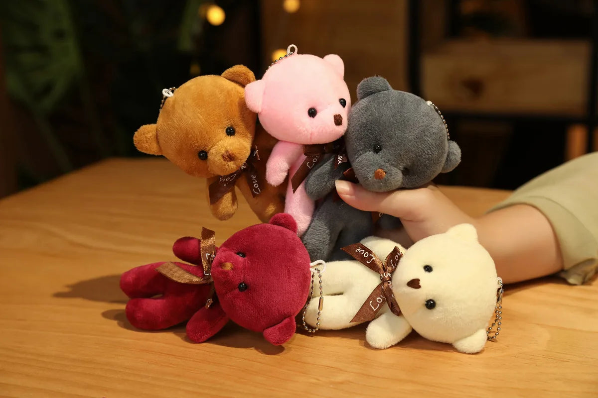 • Nom du produit : Mini pendentif ours en peluche avec nœud papillon de 12 cm, jouet en peluche coloré, porte-clés en peluche