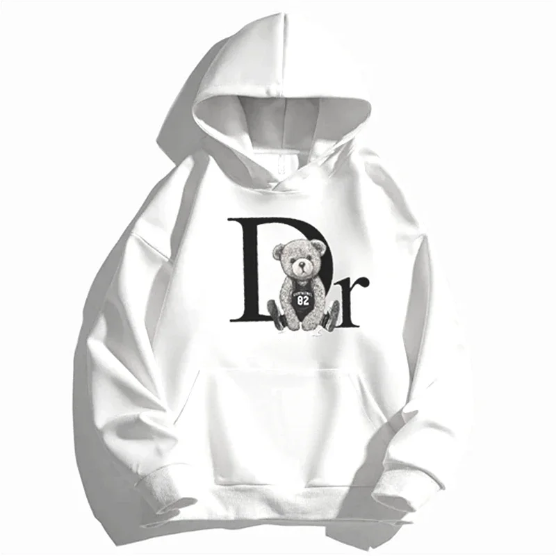 Sweat à capuche décontracté unisexe à imprimé lettre ours