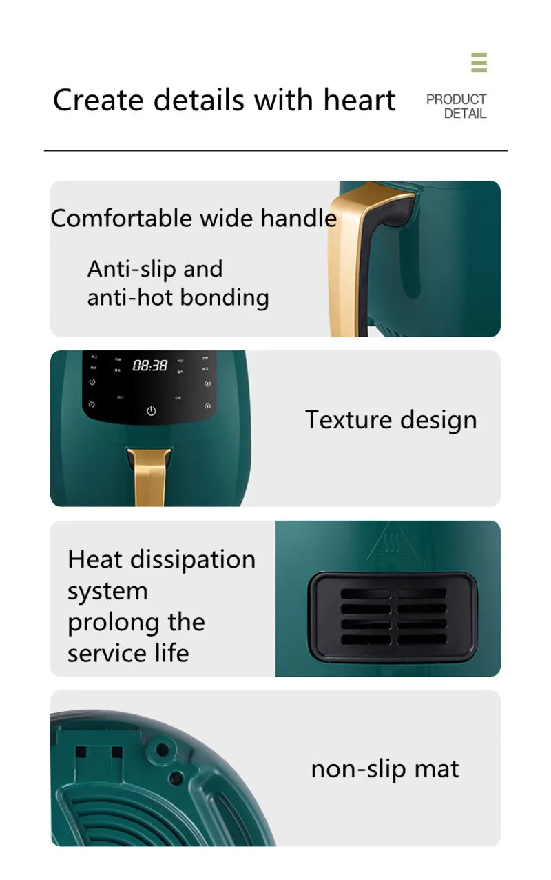- Friteuse à air multifonctionnelle : faites frire, cuire, rôtir, griller et décongeler - le tout dans un seul appareil de cuisine numérique.
