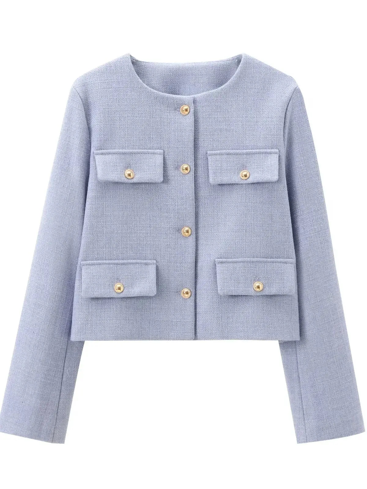 Associez cette veste courte en tweed à un pantalon taille haute ou à une jupe crayon pour un look affirmé, ou enfilez-la par-dessus une robe pour une allure chic et décontractée. Parfaite pour le bureau comme pour un brunch du week-end. 🌸