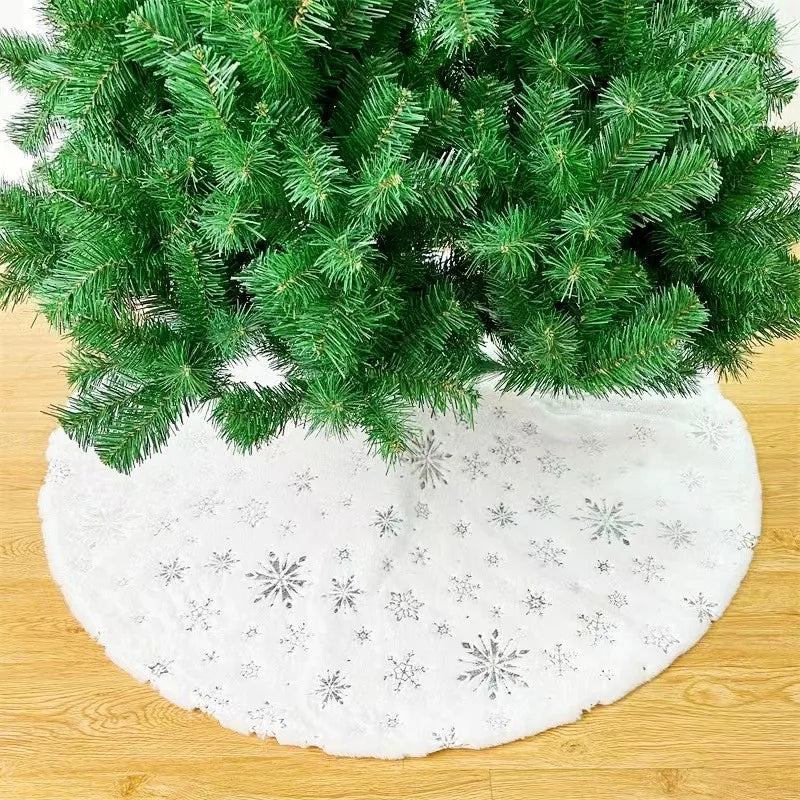 Jupe d'arbre en peluche blanche avec flocon de neige à paillettes argentées