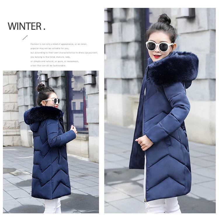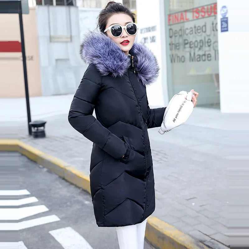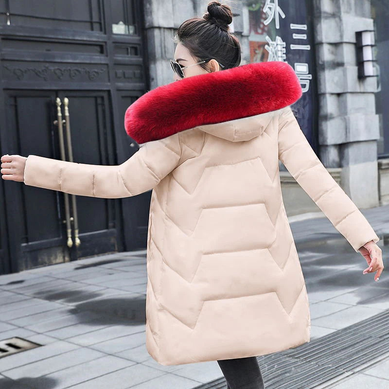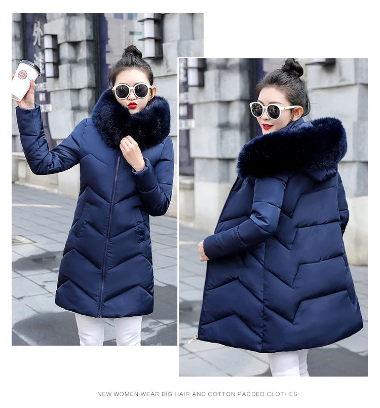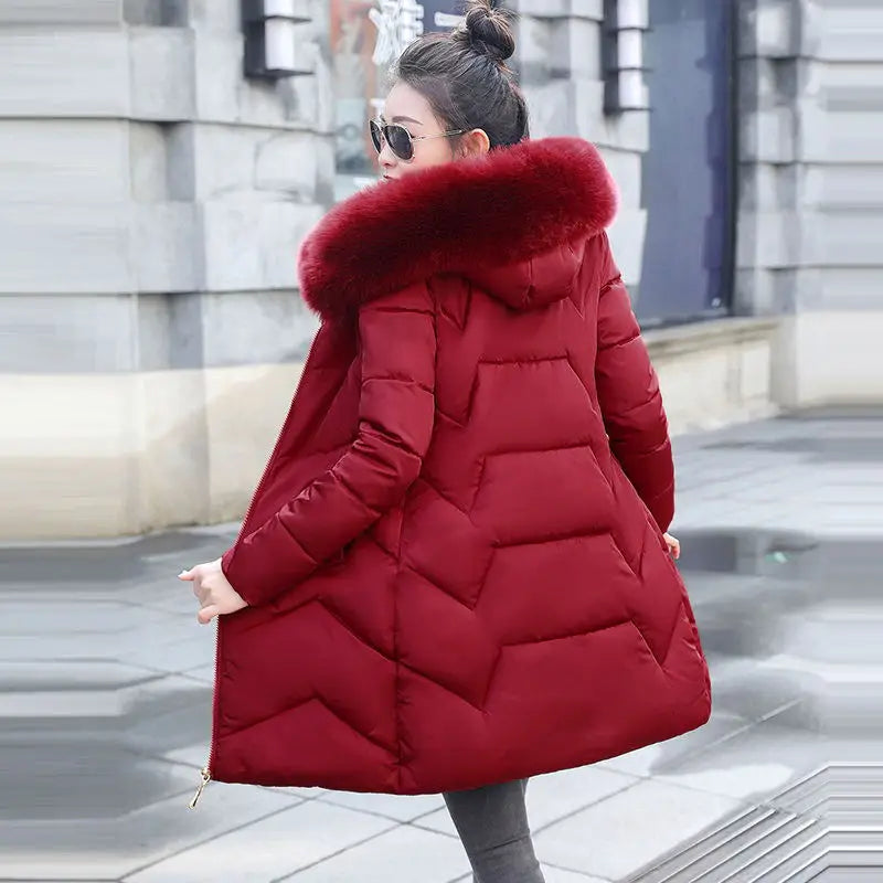 Parka d'hiver à capuche pour femme, grande taille, grande fourrure