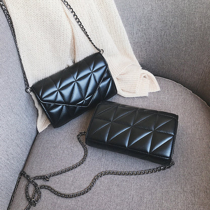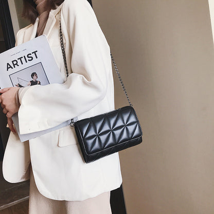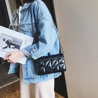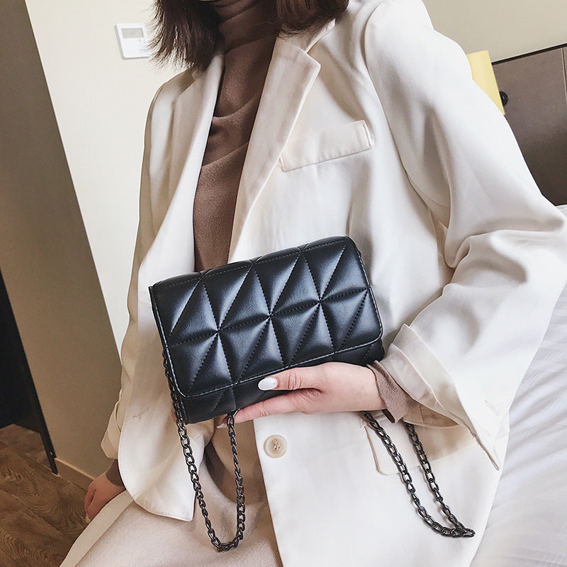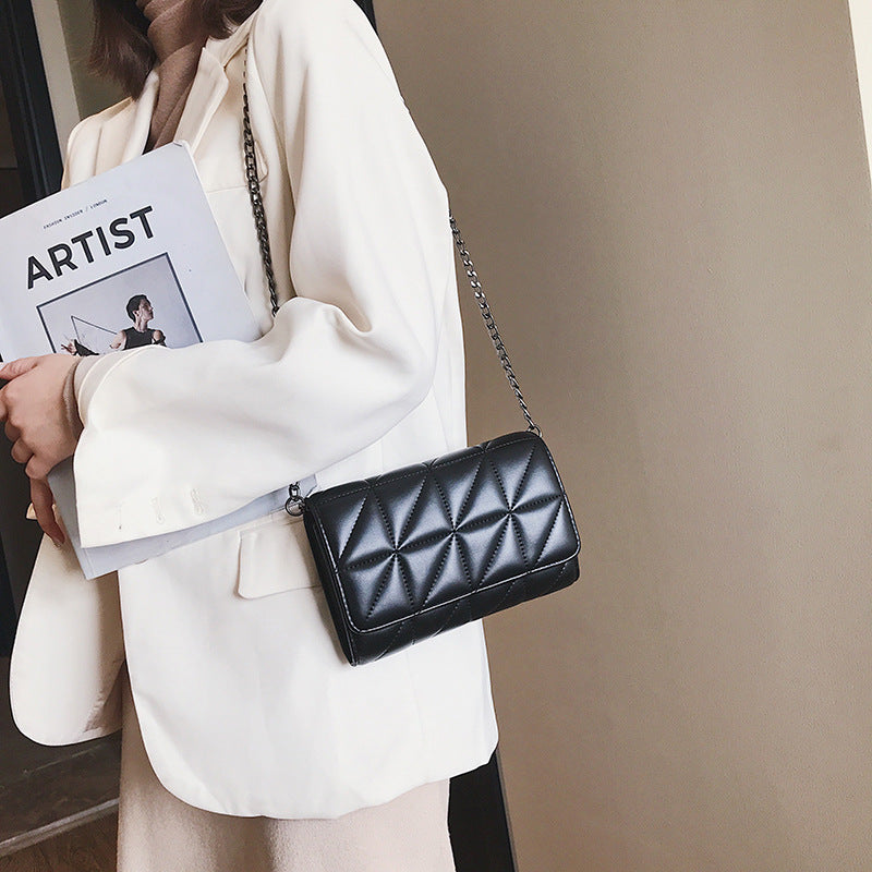 Avec son style hip-hop tendance, ce sac à bandoulière chaîne allie simplicité et élégante broderie en losanges triangulaires — parfait pour un look moderne et affirmé.