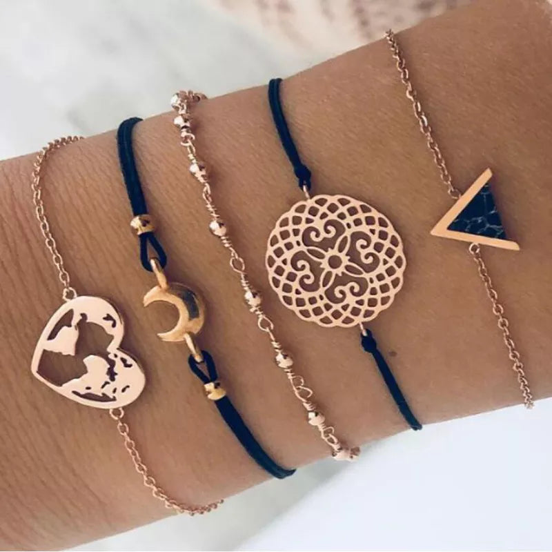 Ensembles de bracelets géométriques pour femmes, carte d'étoiles, breloques en forme de cœur