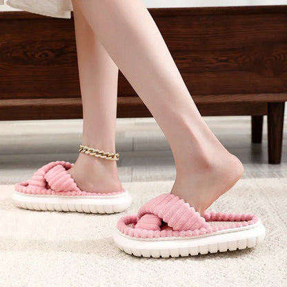 Offrez-vous un confort luxueux avec nos pantoufles à bandes croisées en lin pour femmes. Fabriquées à partir d'un matériau en lin doux et respirant, ces pantoufles présentent un design élégant à bande croisée qui offre un ajustement sûr et une élégance sans effort. La semelle intérieure rembourrée offre un confort supérieur à chaque pas, ce qui les rend parfaites pour se prélasser à la maison ou faire des courses rapides. Offrez à vos pieds une expérience de détente ultime avec ces pantoufles élégantes et confortables.