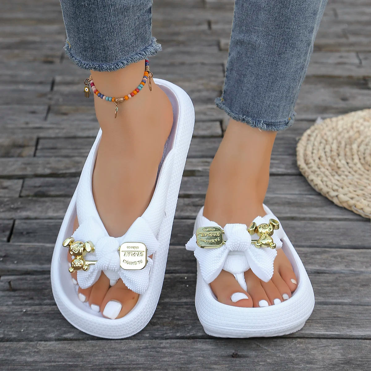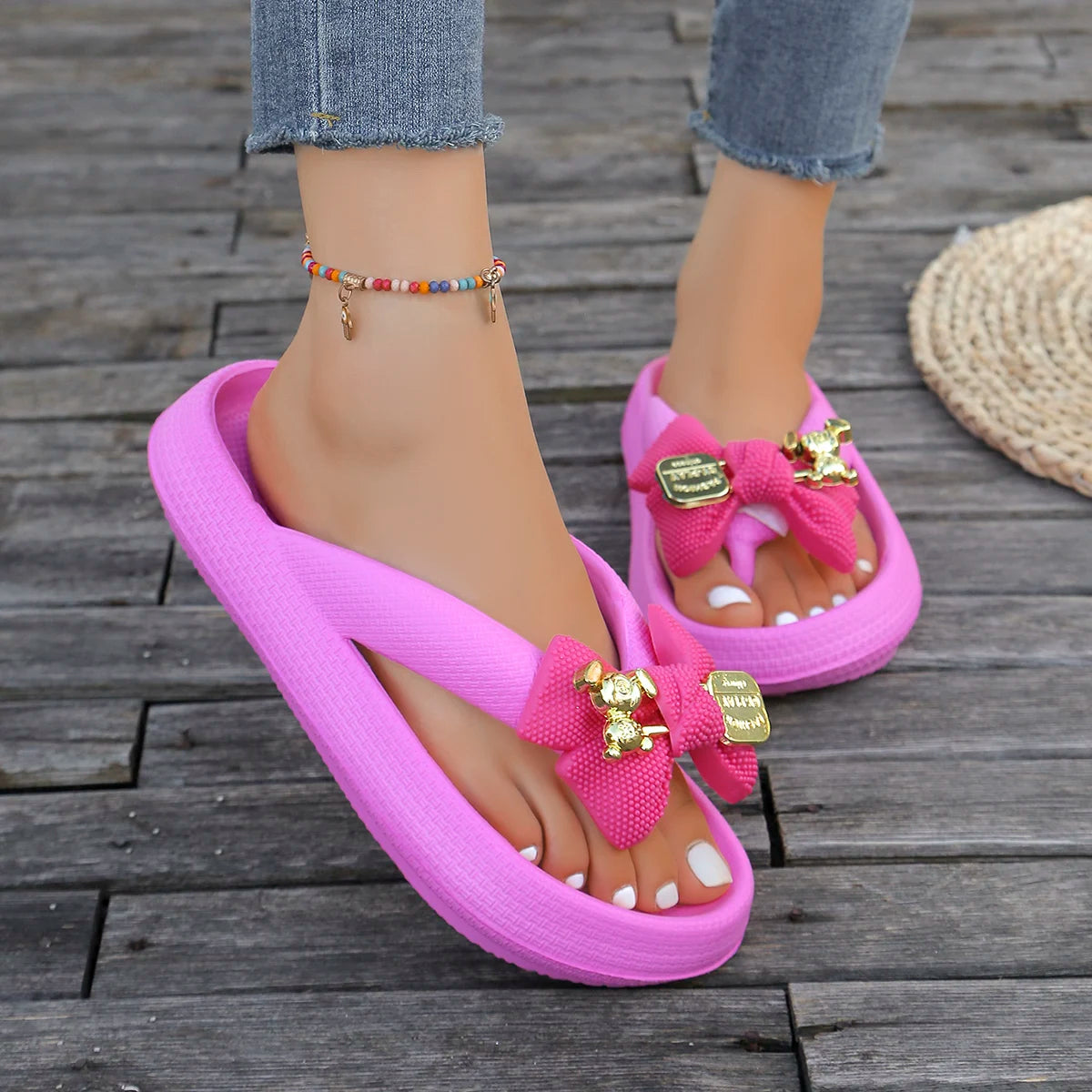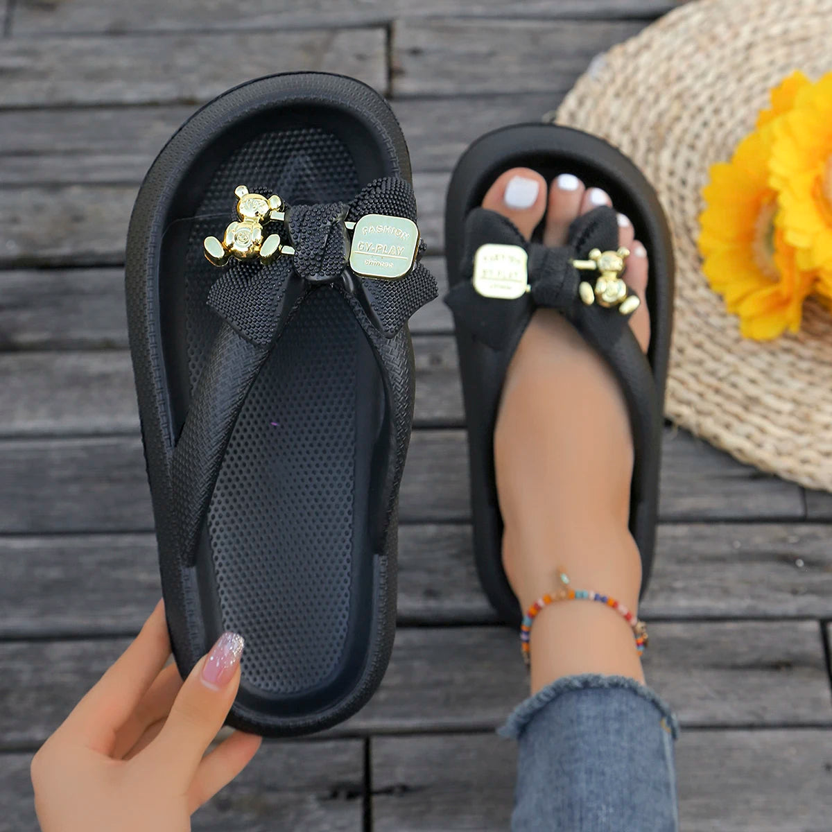 Tongs multicolores pour femmes, sandales de plage à nœud en forme d'ours en peluche