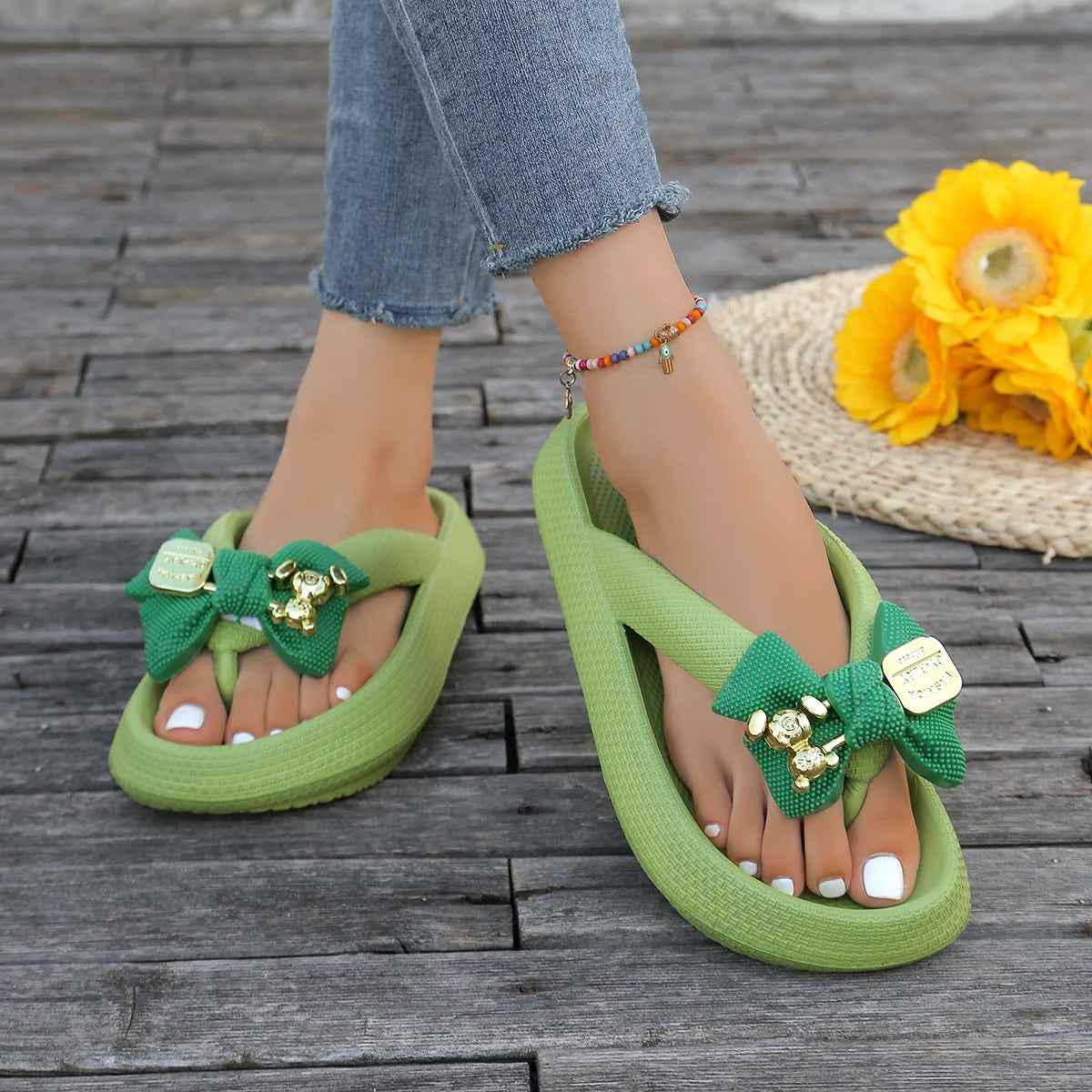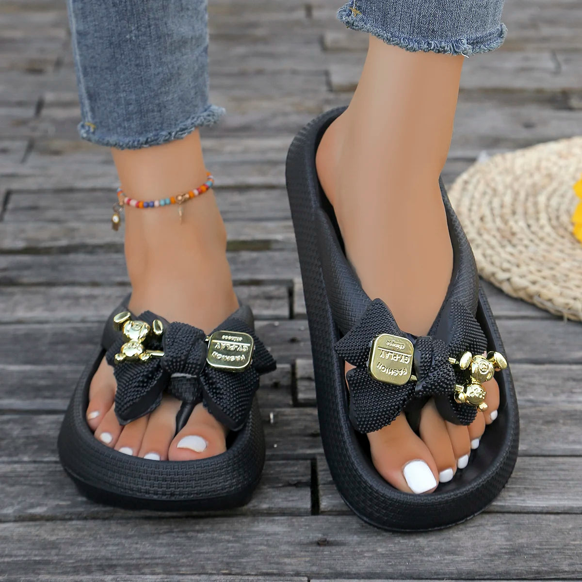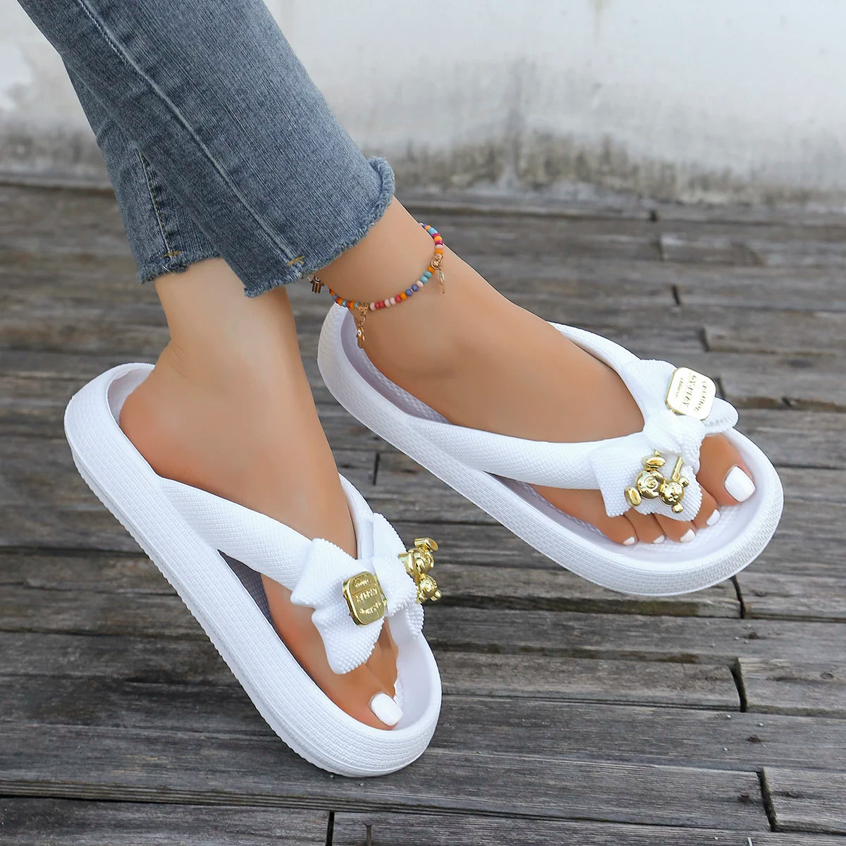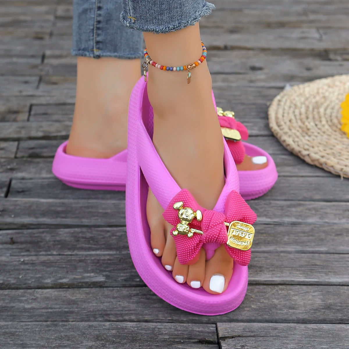 Tongs multicolores pour femmes, sandales de plage à nœud en forme d'ours en peluche