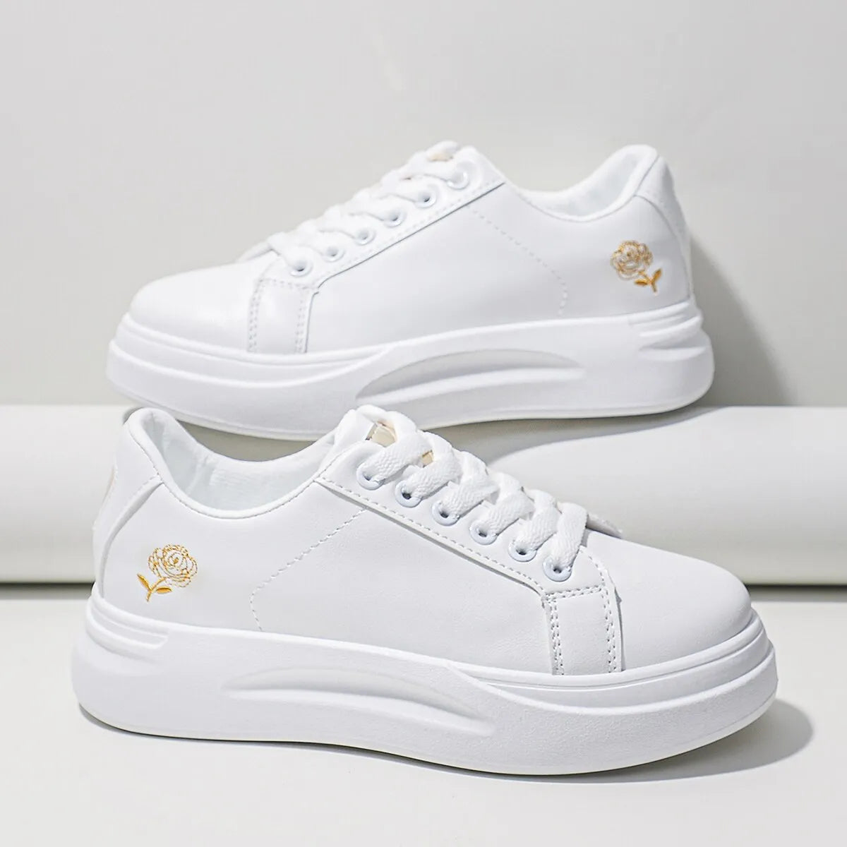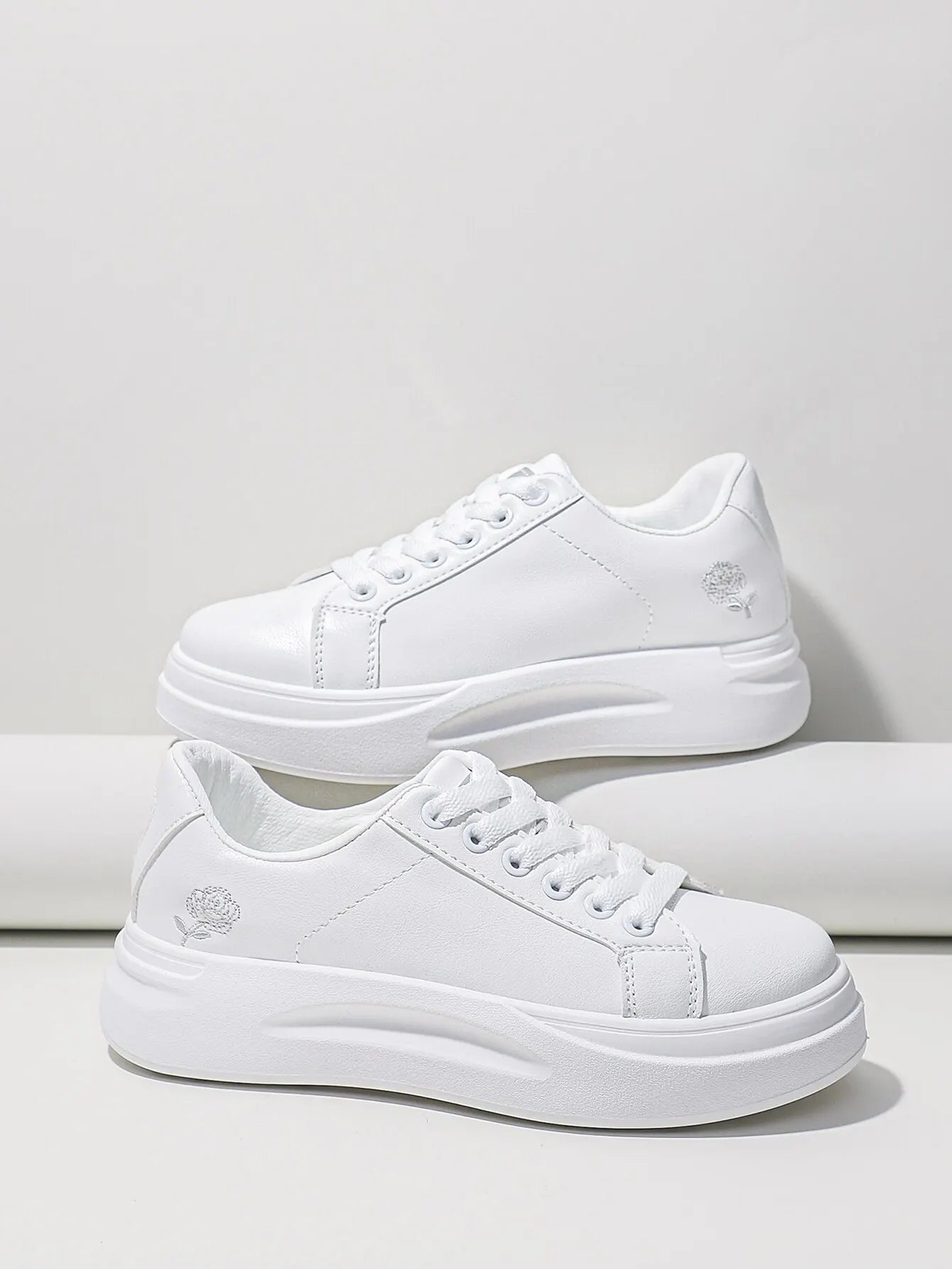 Baskets élégantes à lacets pour femmes, baskets brodées à fleurs blanches