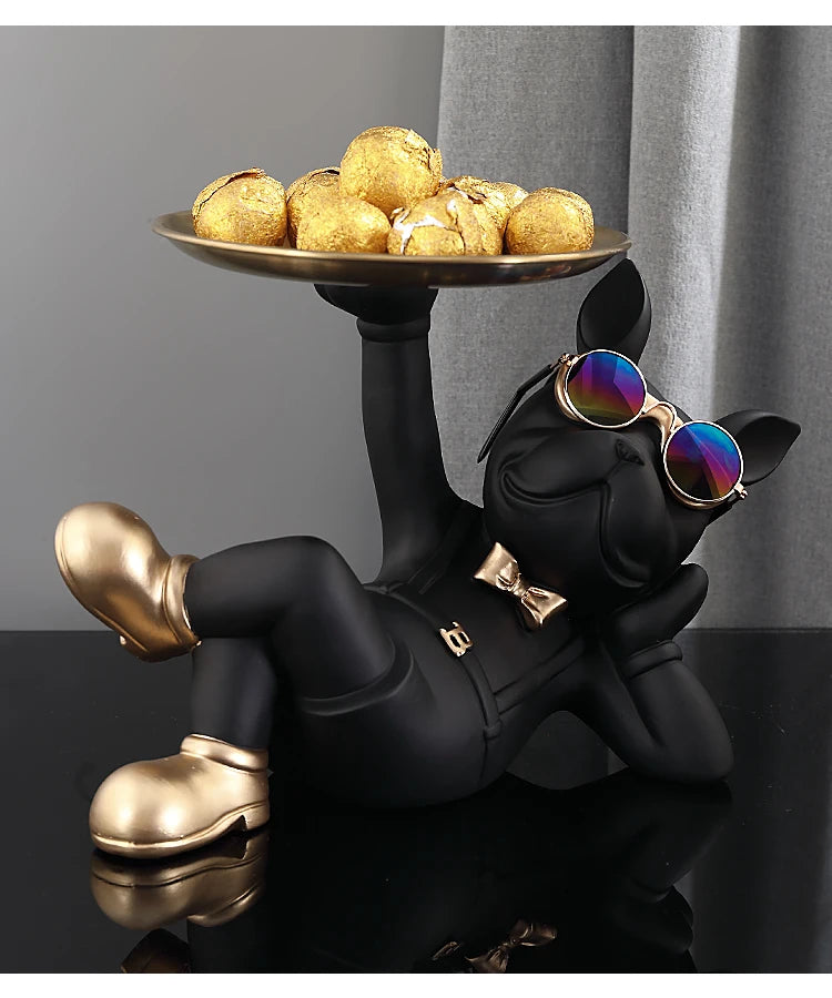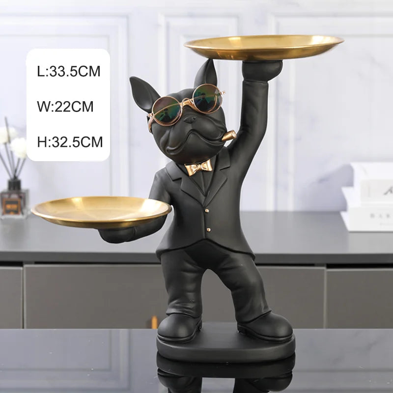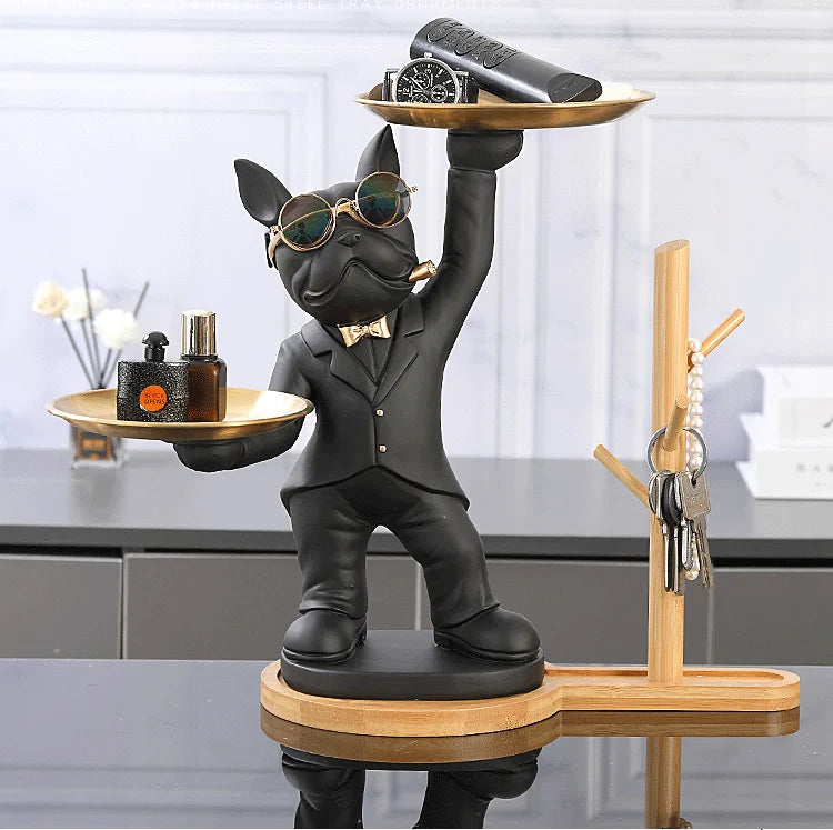 Statue de bouledogue sur étagère en bois - Accent de décoration intérieure