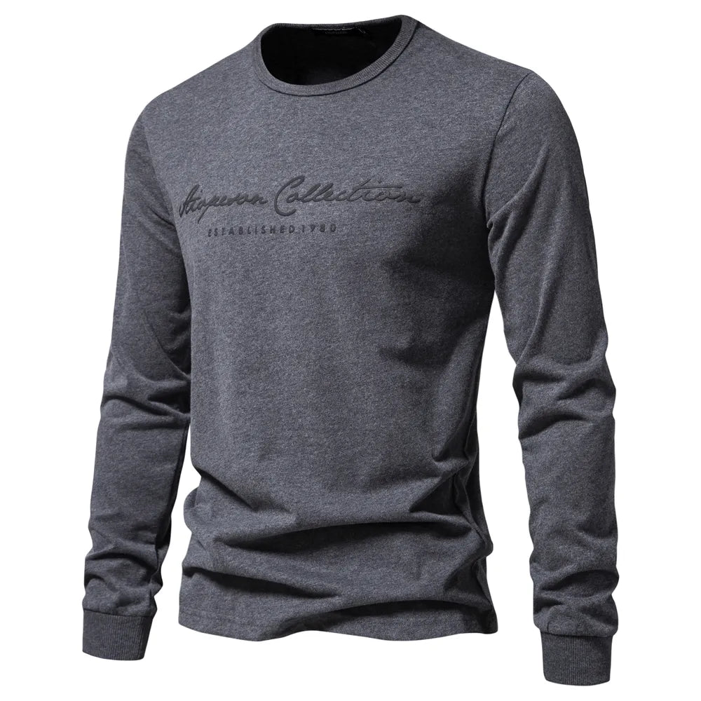 100% Cotton Long Sleeve Men's T-shirt Solid Color Letter Print Casual T shirts for Men New Spring Tops Tee Men Clothing