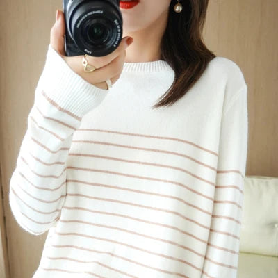 This striped sweater isn’t just about looks — it’s about comfort, confidence, and charm. A perfect everyday essential for women who appreciate minimalist style with a bold touch.