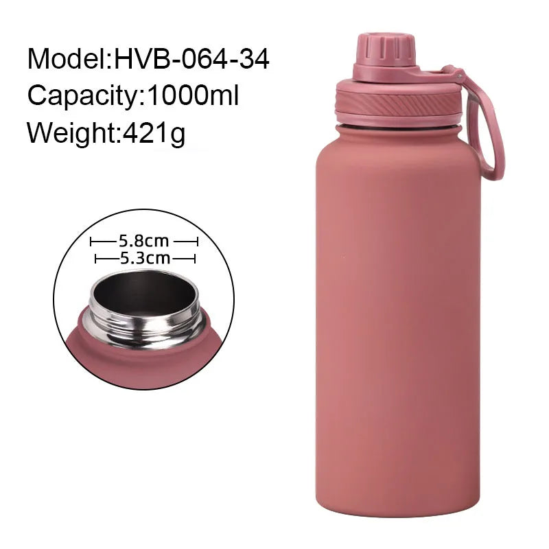 Experience the best in beverage insulation with our 1L large mouth thermos cup. Made with double stainless steel, it effectively locks in heat or cold, perfect for any American adventure. Its portable handle adds convenience, while the seal ensures leak-proof performance. Stay refreshed during sports activities or outdoor excursions with this reliable and versatile sports water bottle.