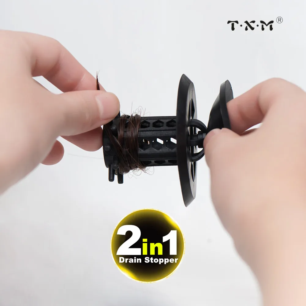1,T·X·M Smart Design:Drain hair catcher & bathtub drain stopper 2- in-1.Fits any standard 1.35 ″ to 1.75″ bathtub drain.