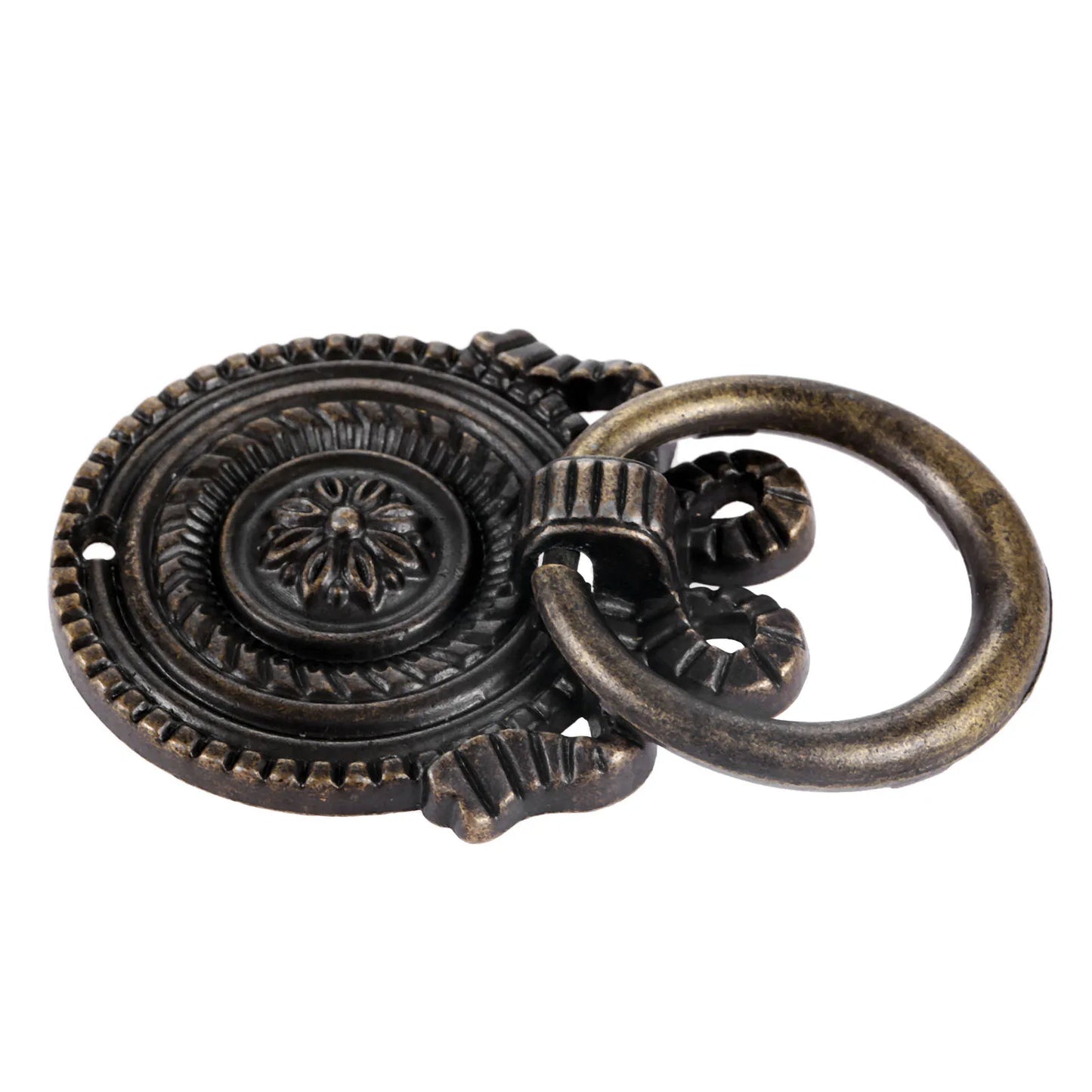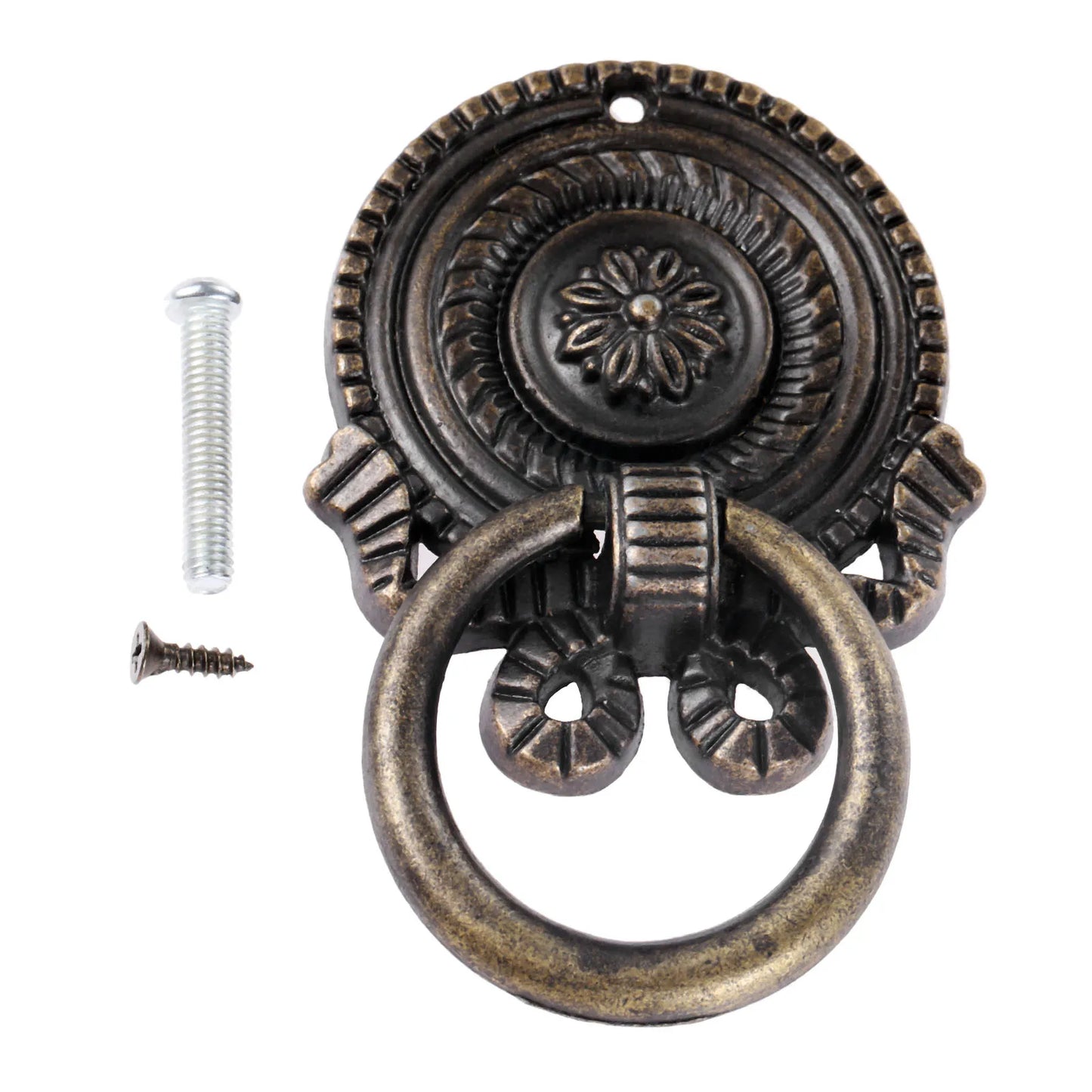 Enhance your kitchen or cupboard doors with this antique bronze bow medal ring pull handle. Crafted from durable alloy, it exudes a retro charm with its unique design. Measuring 65*50mm and including screws, it's easy to install and instantly adds a vintage flair to your cabinets or drawers. Elevate your decor with this stylish and functional retro accent.