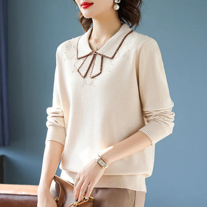 Women's Long Sleeve Knitted Bow Neck Sweater
