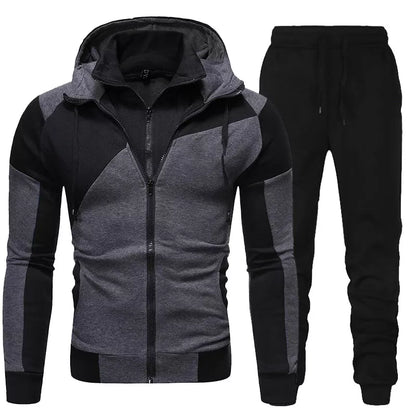 - Men Tracksuits Set Spring Autumn Long Sleeve Hoodie Zipper Jogging Trouser Patchwork Fitness Run Suit Casual Clothing Sportswear
