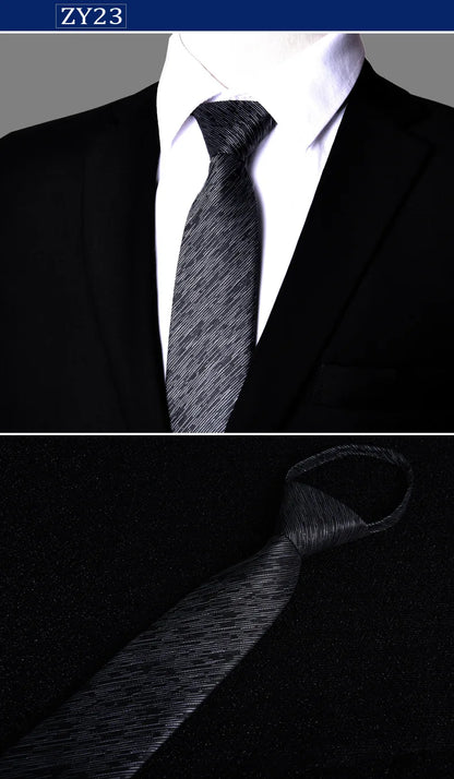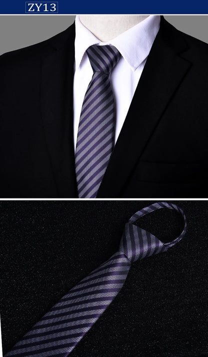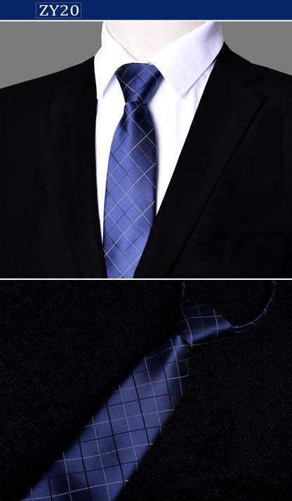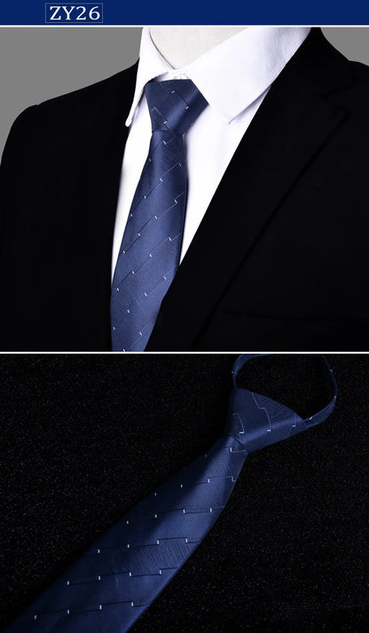 Blue 7CM Skinny Zipper Ties Solid & Striped Patterns