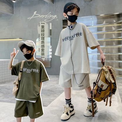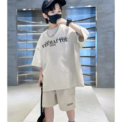 Boys' Summer 2-Piece Letter Tshirt & Shorts Set