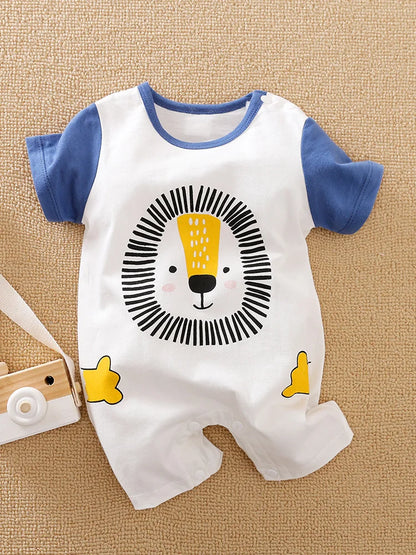 Comfy Lion Print Summer Jumpsuit for Newborns