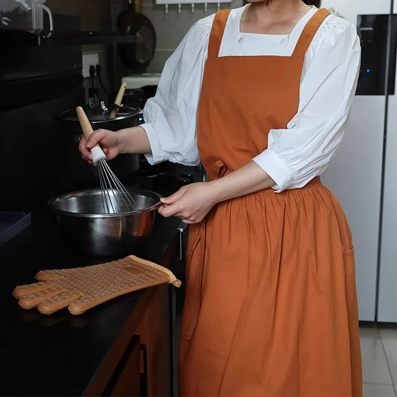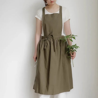 Long Pleated Waterproof Cotton Kitchen Apron for Salon Beauty Women's Anti-dirty Cooking Baking Pinafore Cleaning Work Clothes